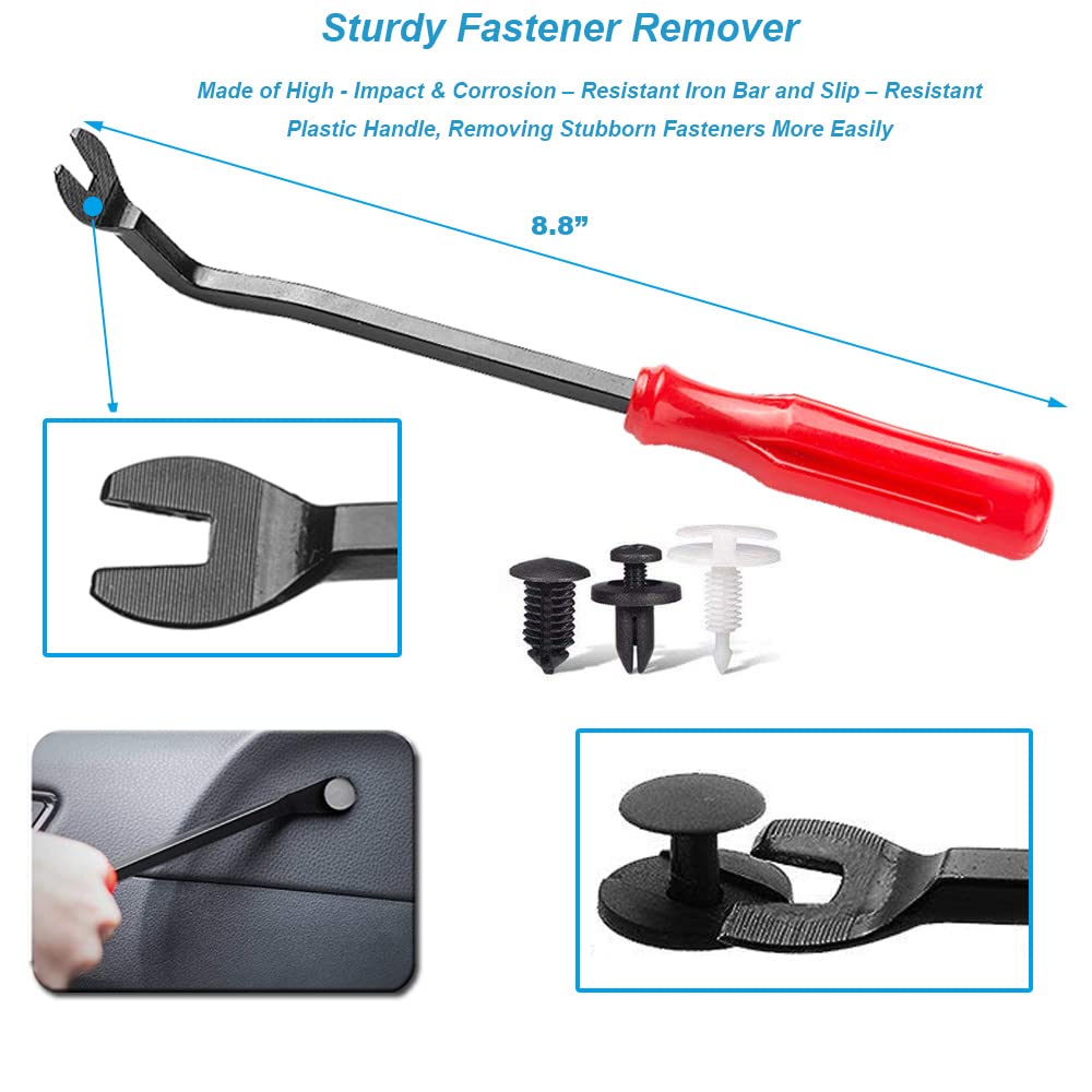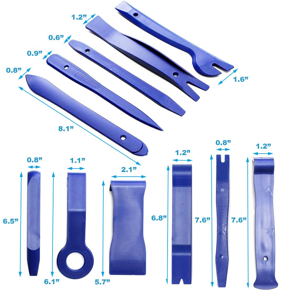 Das Set umfasst elf spezifische Hebelwerkzeuge sowie einen Befestigungsniet Entferner, die eine breite Palette an Anwendungen abdecken. Von Türverkleidungen und Armaturenbrettern bis hin zu Radnaben und Audiosystemen – dieses Werkzeugset meistert unterschiedlichste Herausforderungen. Gefertigt aus flexiblem, hochfestem Nylonfasermaterial, sind die Werkzeuge robust und langlebig, dabei aber sanft zu empfindlichen Oberflächen. Sie brechen oder reißen nicht so leicht wie herkömmliche Werkzeuge und bieten gleichzeitig eine hohe Schlagfestigkeit für eine sichere Handhabung.Technische Daten