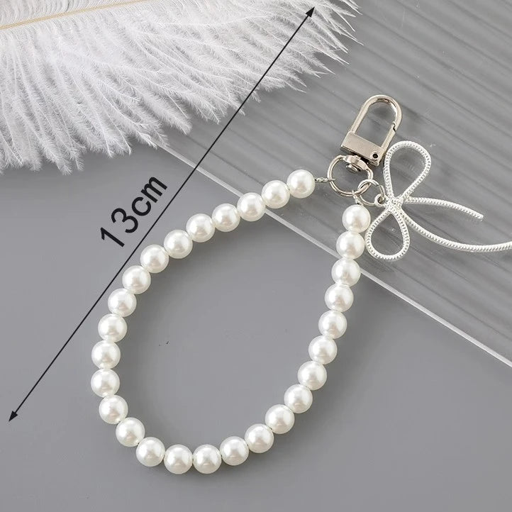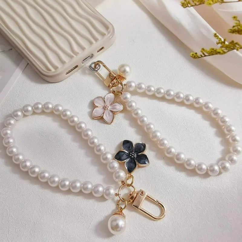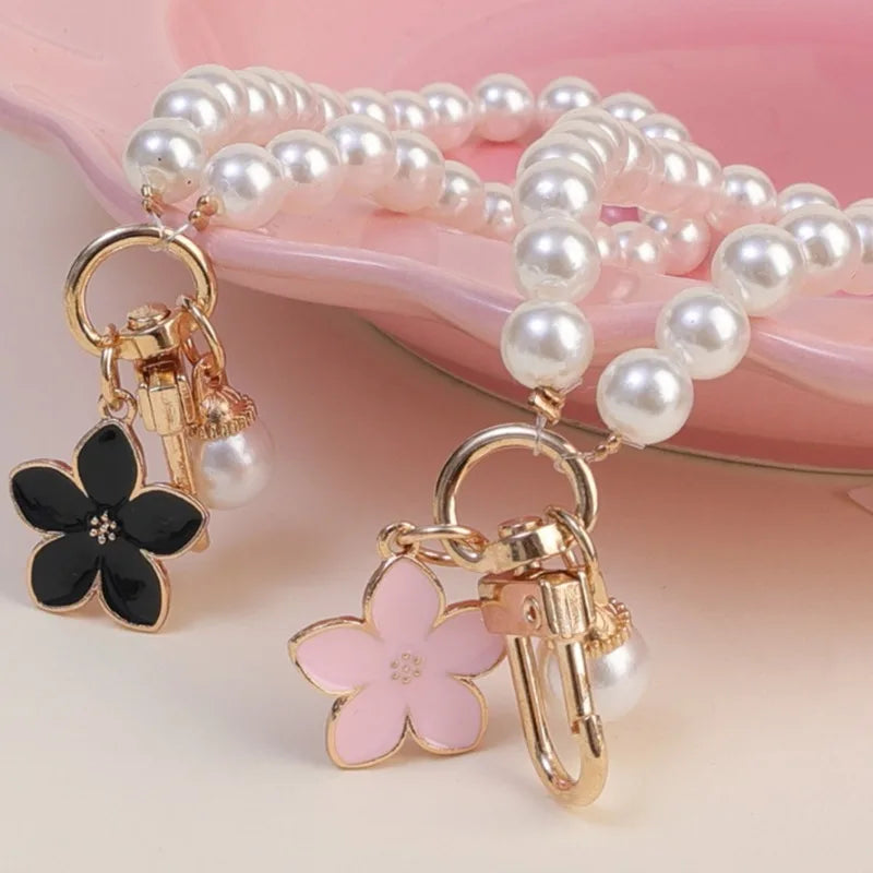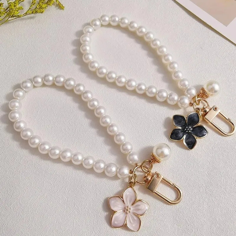 Klassischer weißer Perlen Schlüsselanhänger mit Blumen-Accessoires