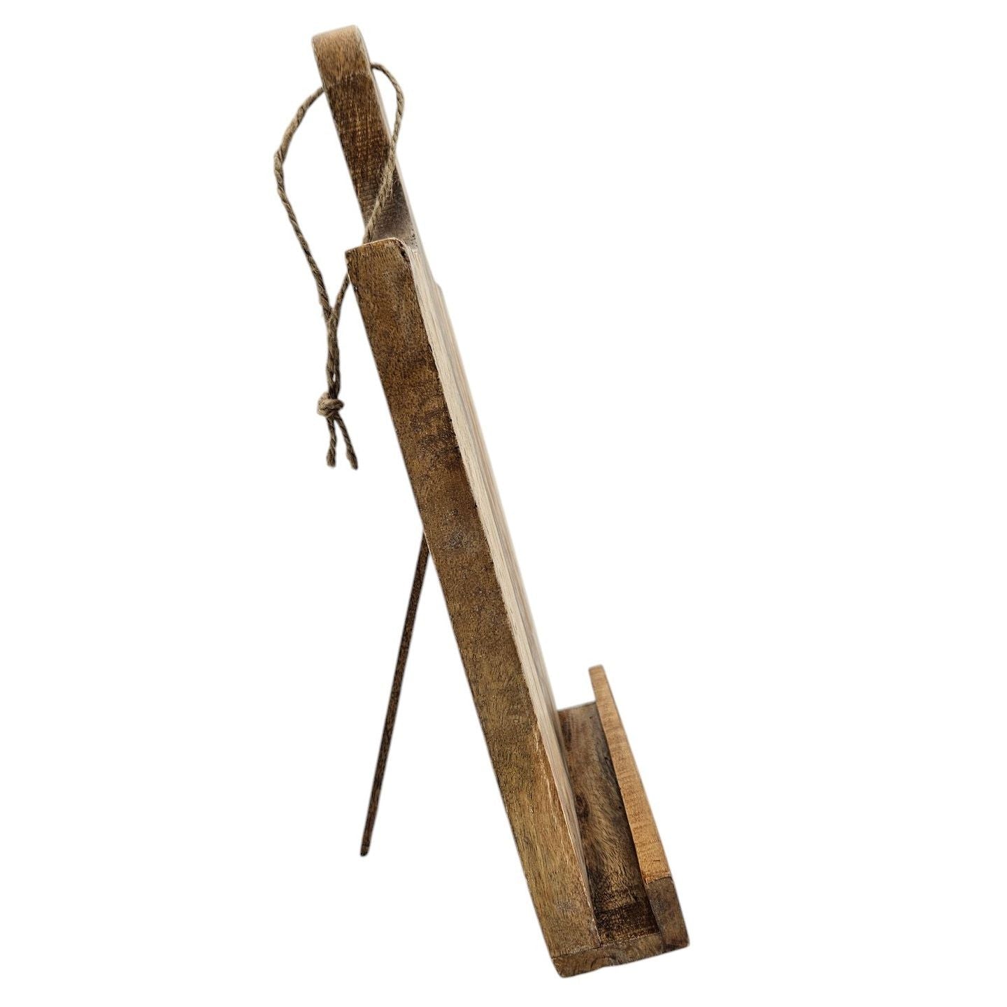 Praktischer Kochbuchhalter aus Mangoholz mit Transportgriff und Kordel