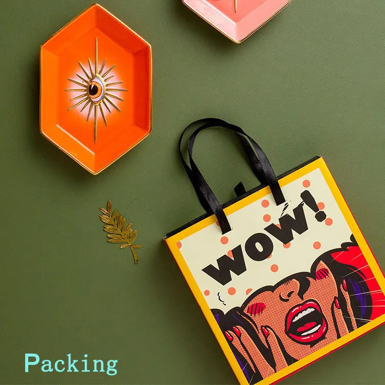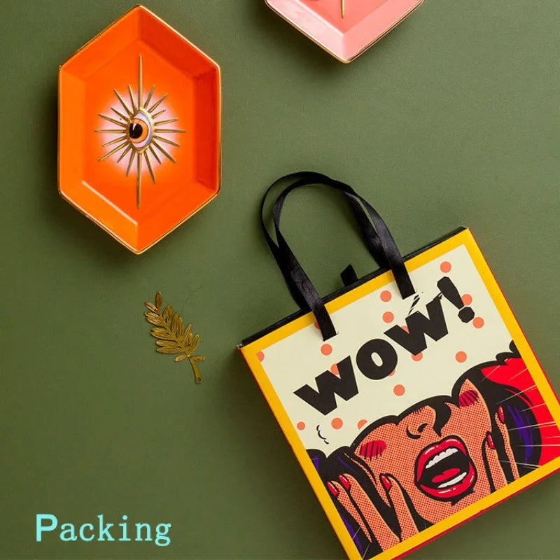 Dieses sechseckige Tablett aus Keramik vereint praktische Ablagefläche mit dekorativem Flair. Perfekt geeignet für Ihr Zuhause oder die Veranda, sorgt es für eine stilvolle Präsentation Ihrer Schmuckstücke oder kleiner Gegenstände. Das moderne Design und die bunte Farbgestaltung bringen frischen Schwung in Ihre Einrichtung, hergestellt mit umweltfreundlichem Material aus China.