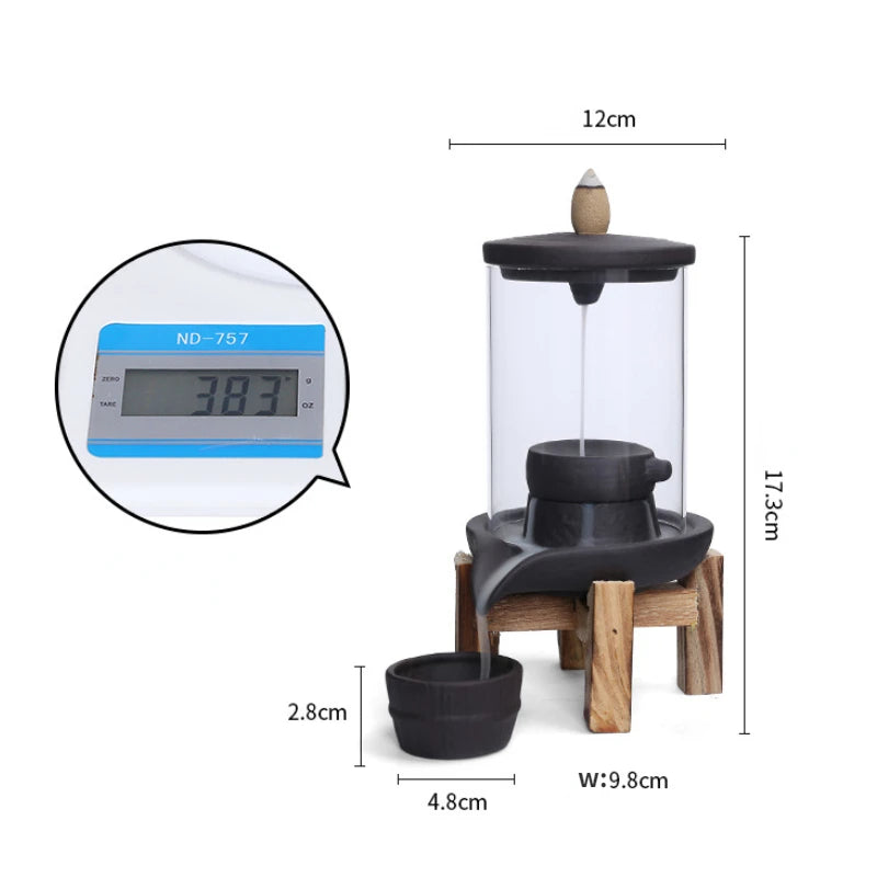 - Rückfluss-Räuchergefäß: Der Rauch fließt sanft nach unten und erzeugt eine faszinierende Optik für Ihre Entspannung.