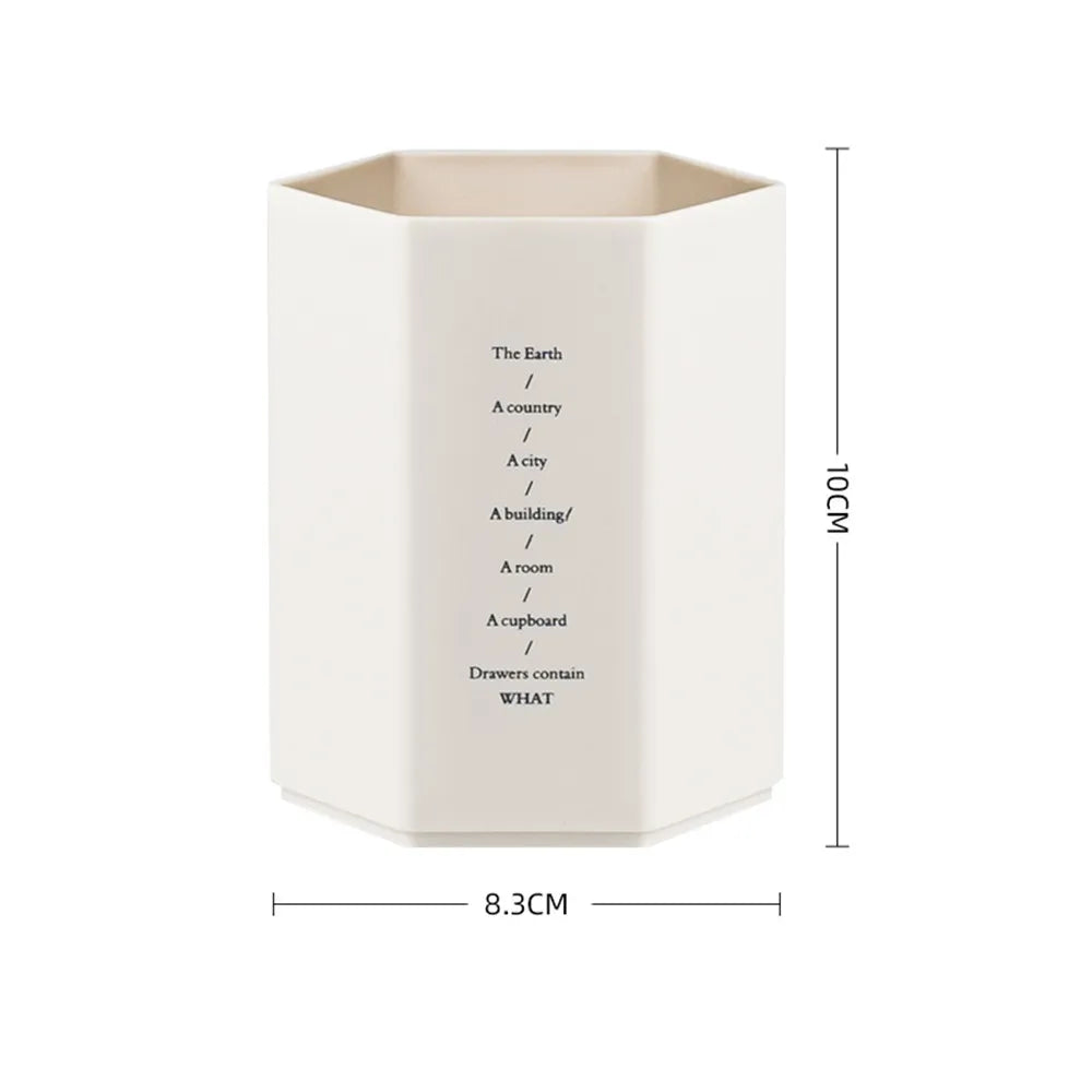 Dieser praktische Stifthalter mit sechseckigem Design bietet viel Platz zur Aufbewahrung von Stiften, Bleistiften und Pinseln. Die große Kapazität sorgt für Ordnung auf dem Schreibtisch und eine klare Struktur Ihrer Schreibwaren.