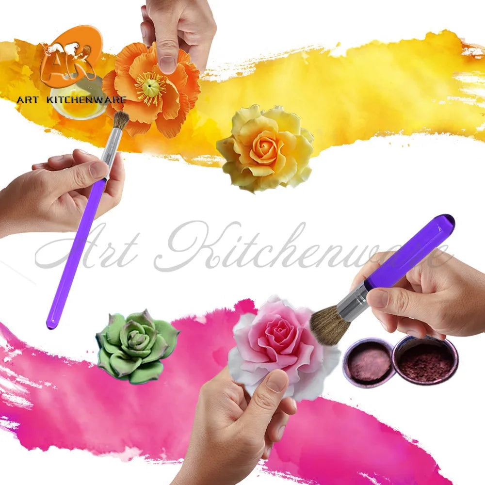 Nutzen Sie die zwei verschiedenen Pinselgrößen, um Zuckerblumen und -blätter kunstvoll zu färben und zu modellieren. Die Bürsten eignen sich auch hervorragend für feine Malarbeiten auf Fondant und Marzipan, und bieten präzision bei jeder kreativen Aufgabe.