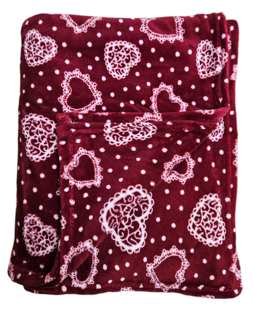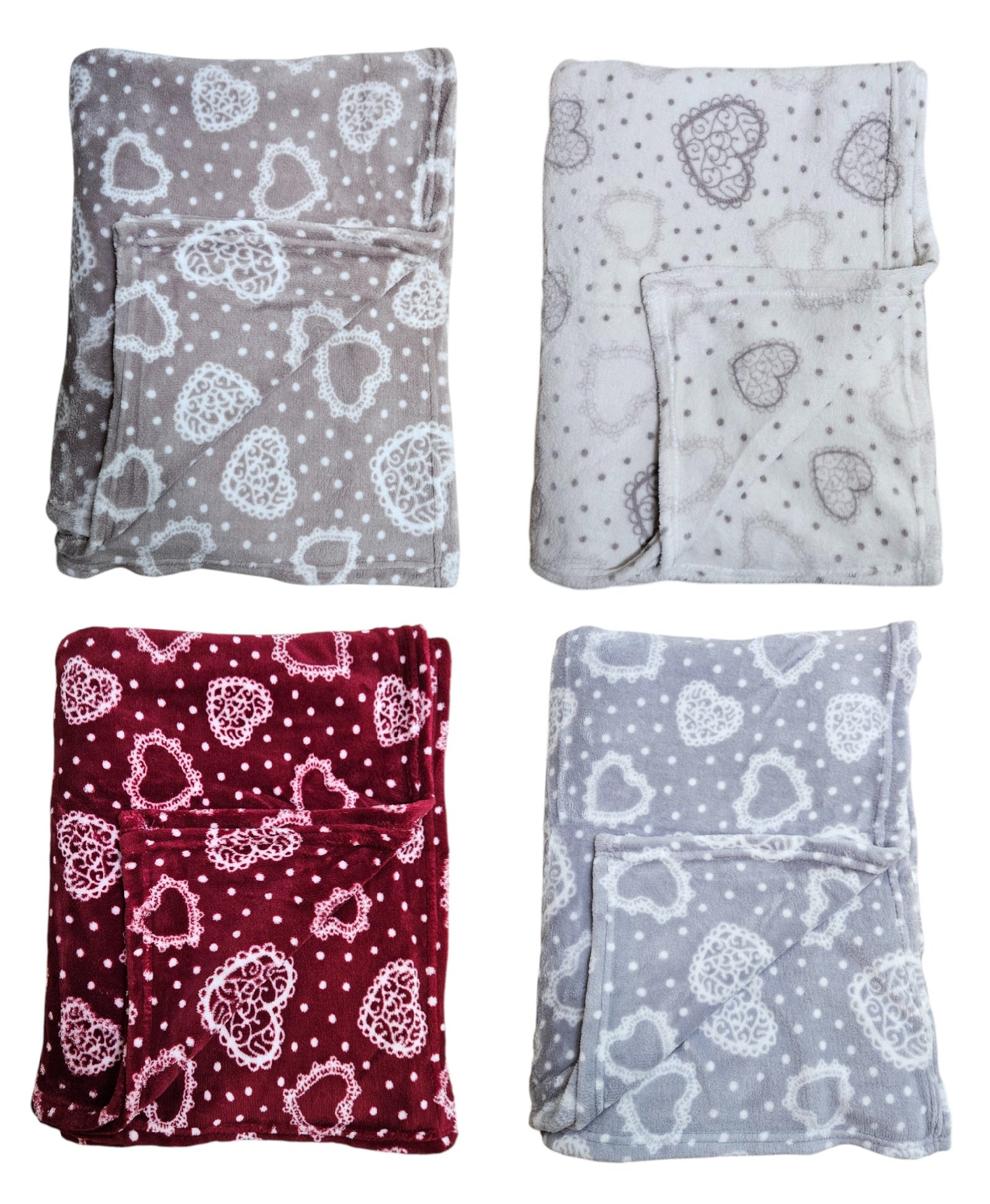 Kuscheldecke Herzen 150x200 cm Creme Grau Beige Rot Wohndecke