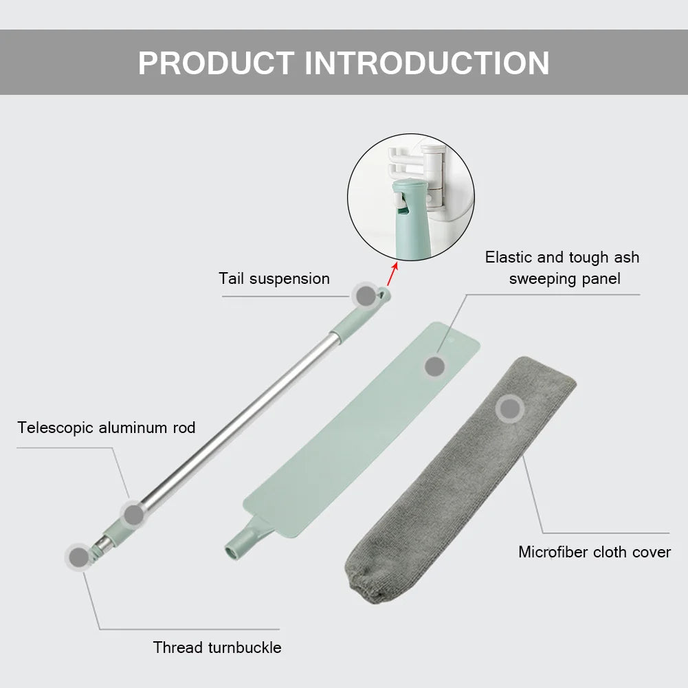 - Maße & Material: Flexibler Teleskopstab mit Mikrofaserbürstenkopf für effiziente Staubaufnahme