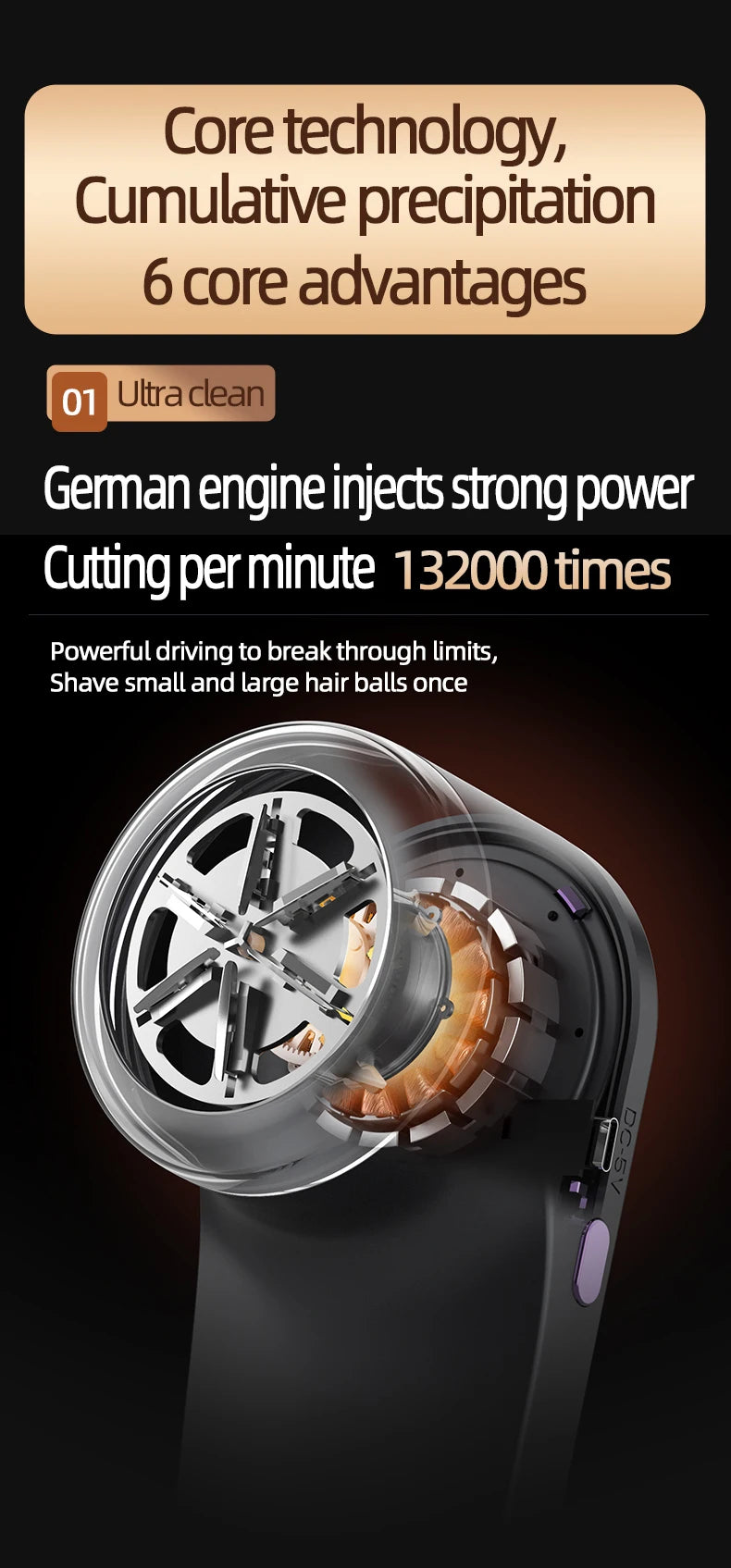 Tragbarer elektrischer Flusenentferner mit USB Akku und Hochgeschwindigkeitsmotor