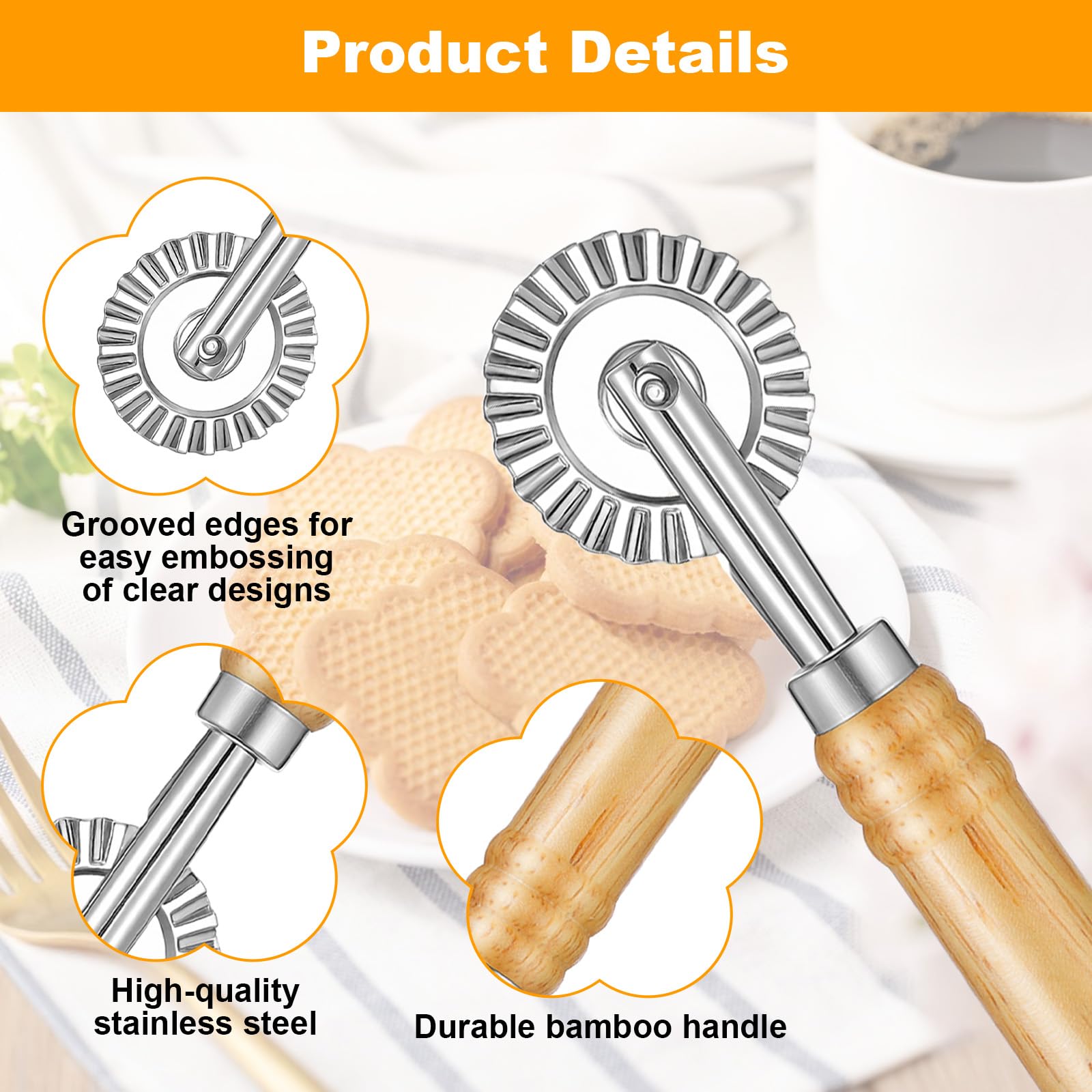 Das einzigartige Raddesign unseres Schneiders garantiert dank seiner praezisen Zahnung saubere Schnitte und dekorative Muster. Ideal fuer Teigraedchen und Wan Tan Ausstecher. Gefertigt aus robustem rostfreiem Edelstahl und einem Griff aus nachhaltigem Bambus, bietet dieses Werkzeug nicht nur Langlebigkeit, sondern auch eine lebensmittelechte und spuelmaschinenfeste Eigenschaft. Der ergonomische Bambusgriff sorgt fuer einen sicheren Halt und ermoeglicht mueheloses Arbeiten ohne Verrutschen. Mit einer optimalen Groesse von 16 Zentimetern Laenge und 4 Zentimetern Durchmesser bietet es die ideale Kontrolle fuer praezise Teigverarbeitung und ist vielseitig einsetzbar fuer Pasta Kekse und Pizza.