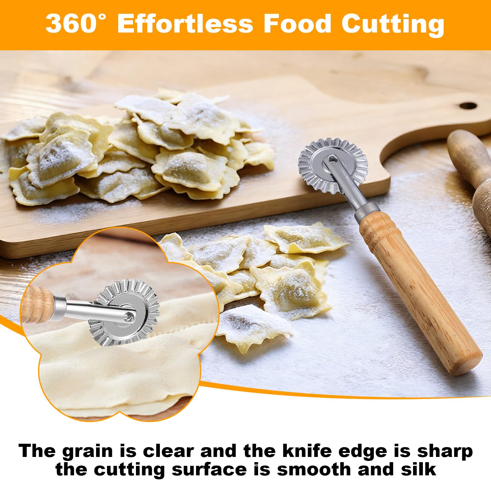 Nudelschneiderrad Gezahnter Teigrad Pizzaschneider Roller Holzgri