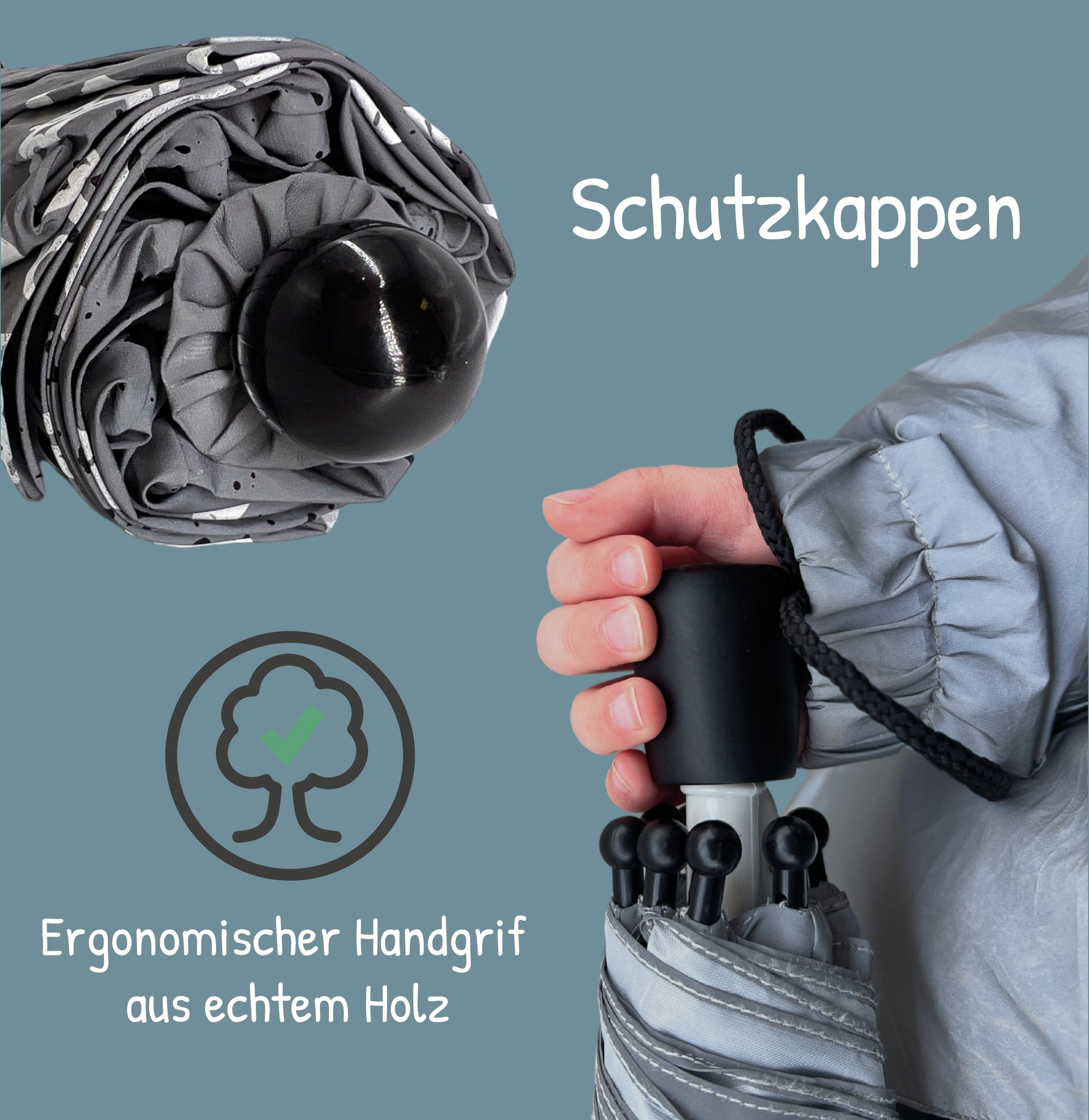 - Sicherheitsmerkmale: Kunststoffkugeln an den Schirmspitzen minimieren Verletzungsrisiken