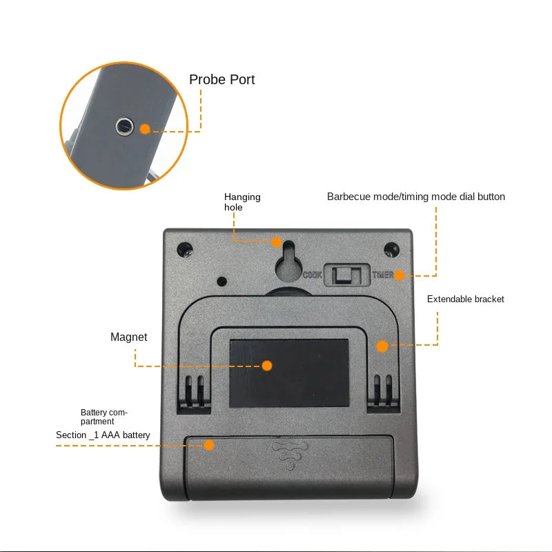 Dieses digitale Lebensmittel-Thermometer verfügt über eine hochwertige Edelstahl-Sonde und eine magnetische Saugkraft, um sicher an Grill, Smoker oder Küchenofen zu haften. Ideal zur genauen Temperaturmessung beim BBQ, Kochen oder Backen.