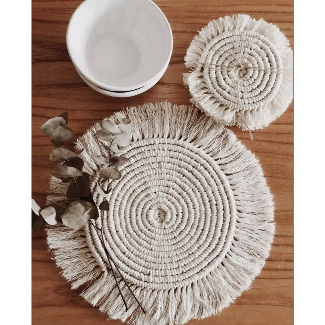 Makramee Tischsets Baumwolle Handgefertigt fuer Tassen Unterlagen