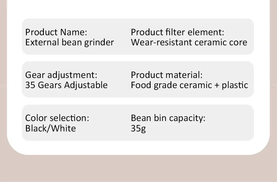 Genießen Sie perfekt gemahlenen Kaffee für Ihre Espressomaschine zuhause. Diese manuelle Kaffeemühle ermöglicht es Ihnen, den Mahlgrad in 35 Stufen präzise anzupassen und so Ihr persönliches Aroma hervorzubringen. Das bedeutsame Design aus Kunststoff und Keramik sorgt für eine einfache Handhabung und langlebigen Einsatz.