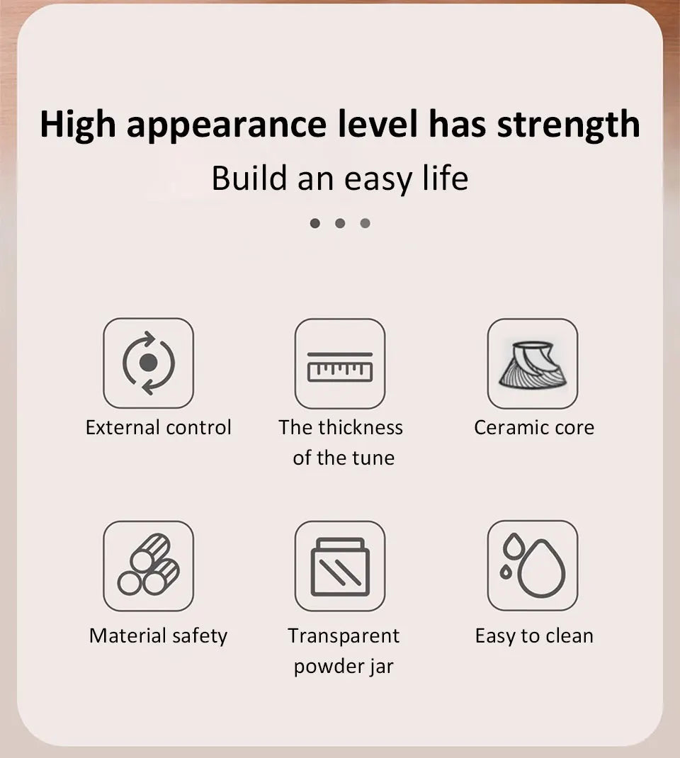 - Keramik-Mahlkern garantiert gleichmäßiges Mahlen ohne Überhitzung