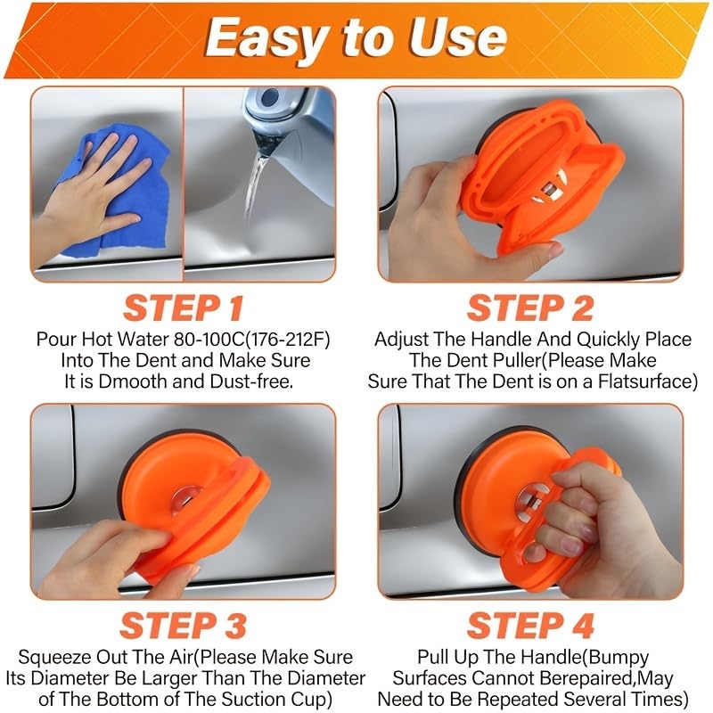 Entdecken Sie das vielseitige 3er Set zur Dellenreparatur, das Ihnen hilft, kleine und mittlere Dellen an verschiedenen Oberflächen effektiv zu entfernen. Dieses praktische Set ist ideal für Autobesitzer, Heimwerker und professionelle Anwender, die Wert auf eine schnelle und unkomplizierte Lösung legen. Sparen Sie sich teure Werkstattbesuche für kleinere Schönheitsfehler an der Karosserie. Mit diesem Werkzeug können Sie unschöne Beulen an Ihrem Fahrzeug sowie an anderen glatten Oberflächen präzise beheben.Vielseitig einsetzbar und einfach zu handhaben