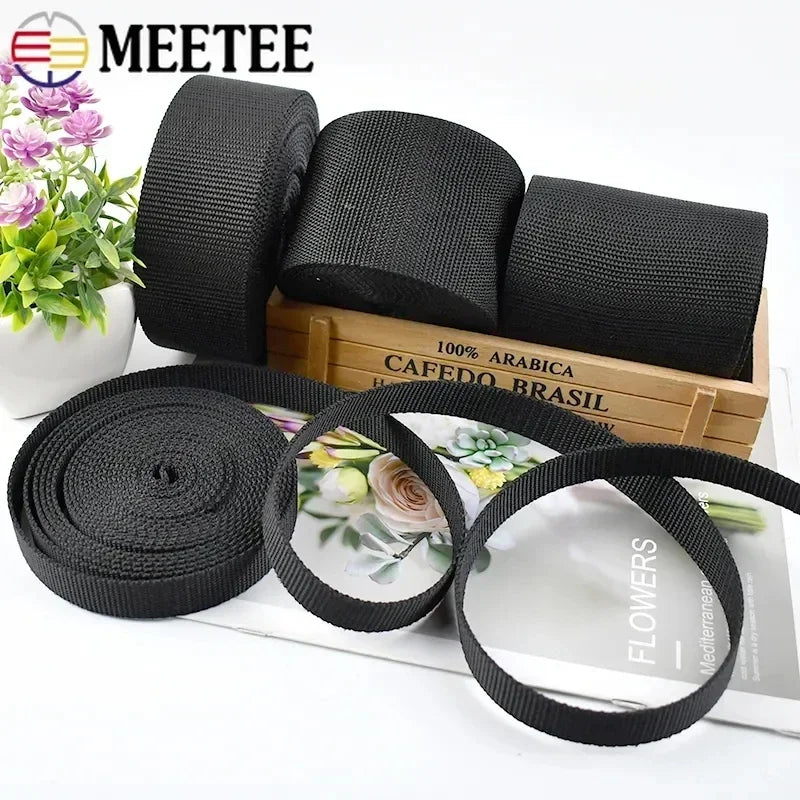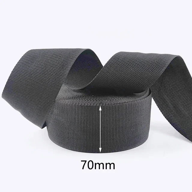 Vielseitiges schwarzes Gurtband aus Polyester und Baumwolle ideal für Nähprojekte und Befestigungen. Gewebte Ausfuhr in mehreren Breiten bietet praktische Lösungen für Taschen Rucksäcke Sicherheitsgurte und Haustierhalsbänder.