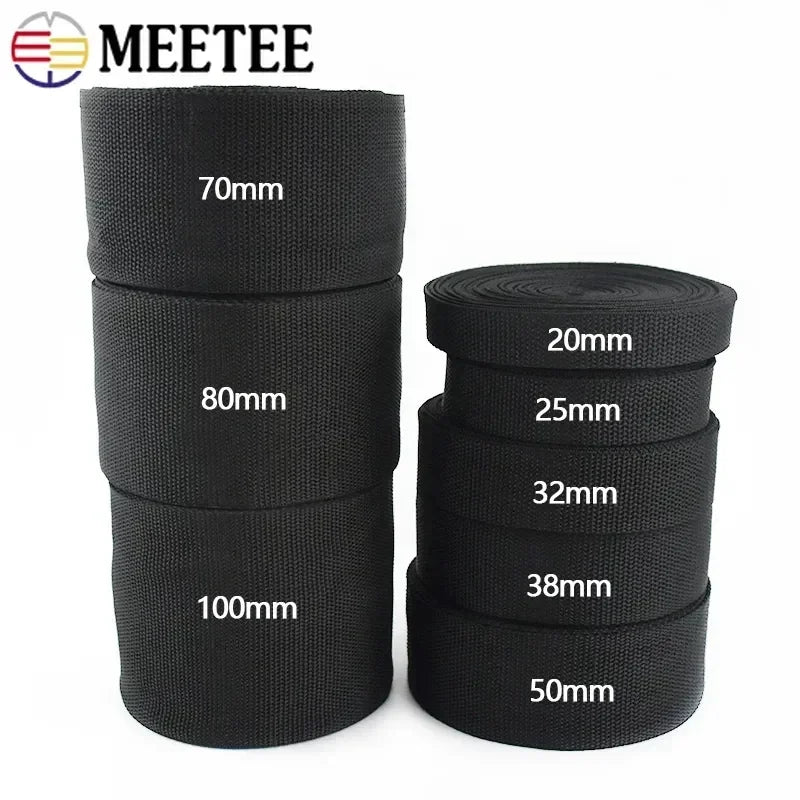 10 m schwarzes Nylon Gurtband 20-100 mm für Taschen Rucksack Hund