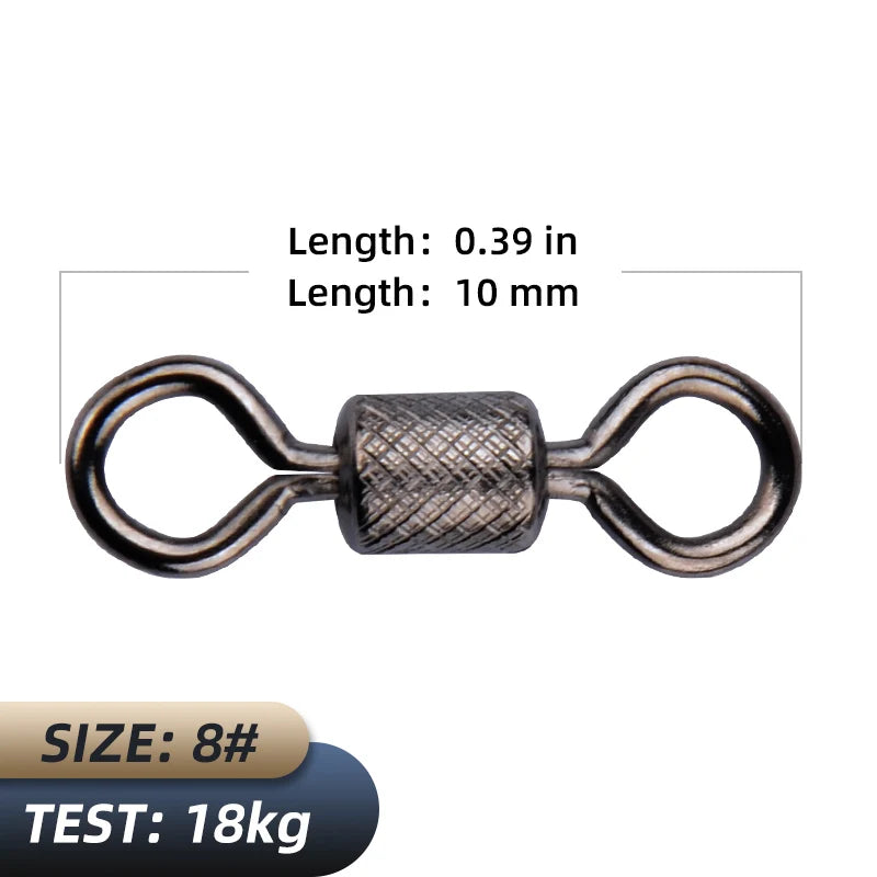 Dieser Angelwirbel aus Edelstahl ist ideal zum Einsatz beim Ozean- und Bootsangeln, speziell für Karpfenruten geeignet. Die robuste Verbindung sorgt für eine sichere und bequeme Handhabung beim Fischen. Dank mehrerer Größen bietet das Set die passende Lösung für unterschiedliche Angelanforderungen.