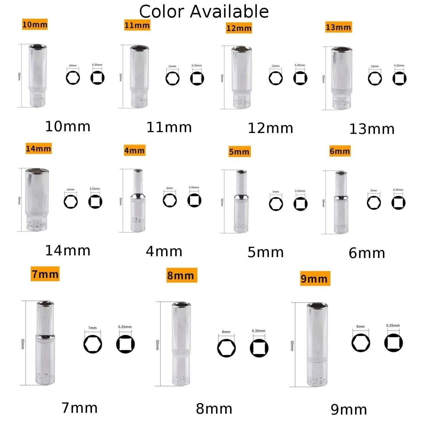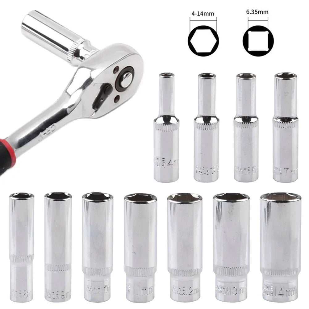 Robuster 1/4 Zoll Tief Steckschlüssel Satz – Metrisch, Sechskant, CrV-Stahl