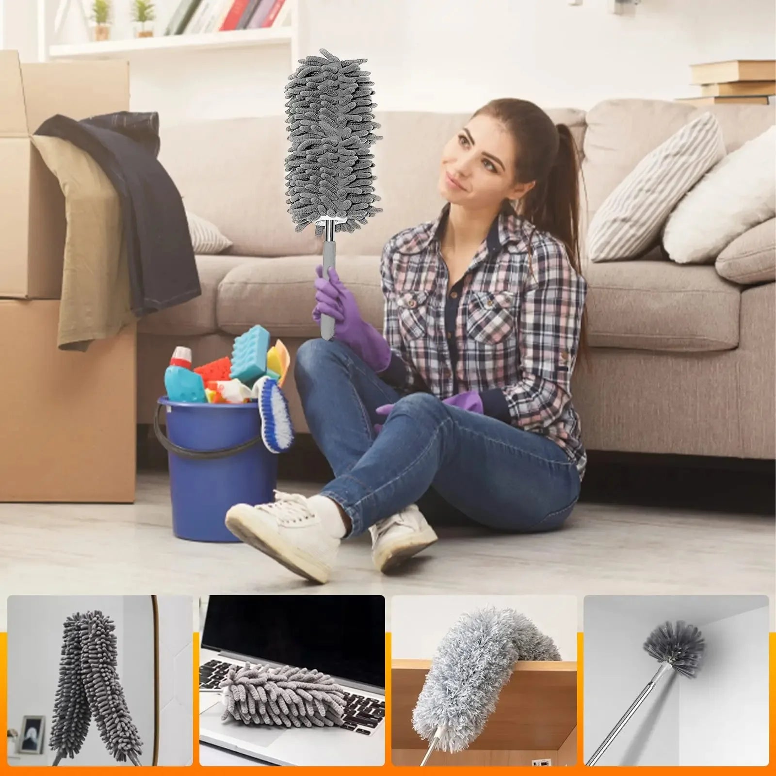 Mikrofaser Staubtuch mit ausziehbarem langen Stiel für Reinigung Zuhause