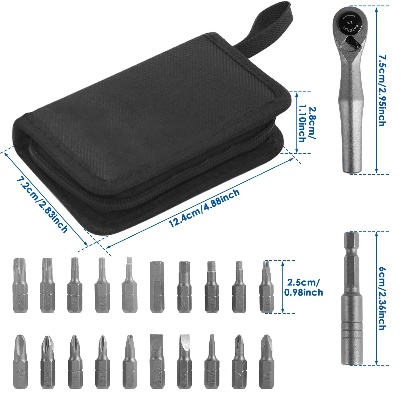 Mini Ratschenschlüssel Set mit 20 Bits multifunktionales Schraubendreher Set