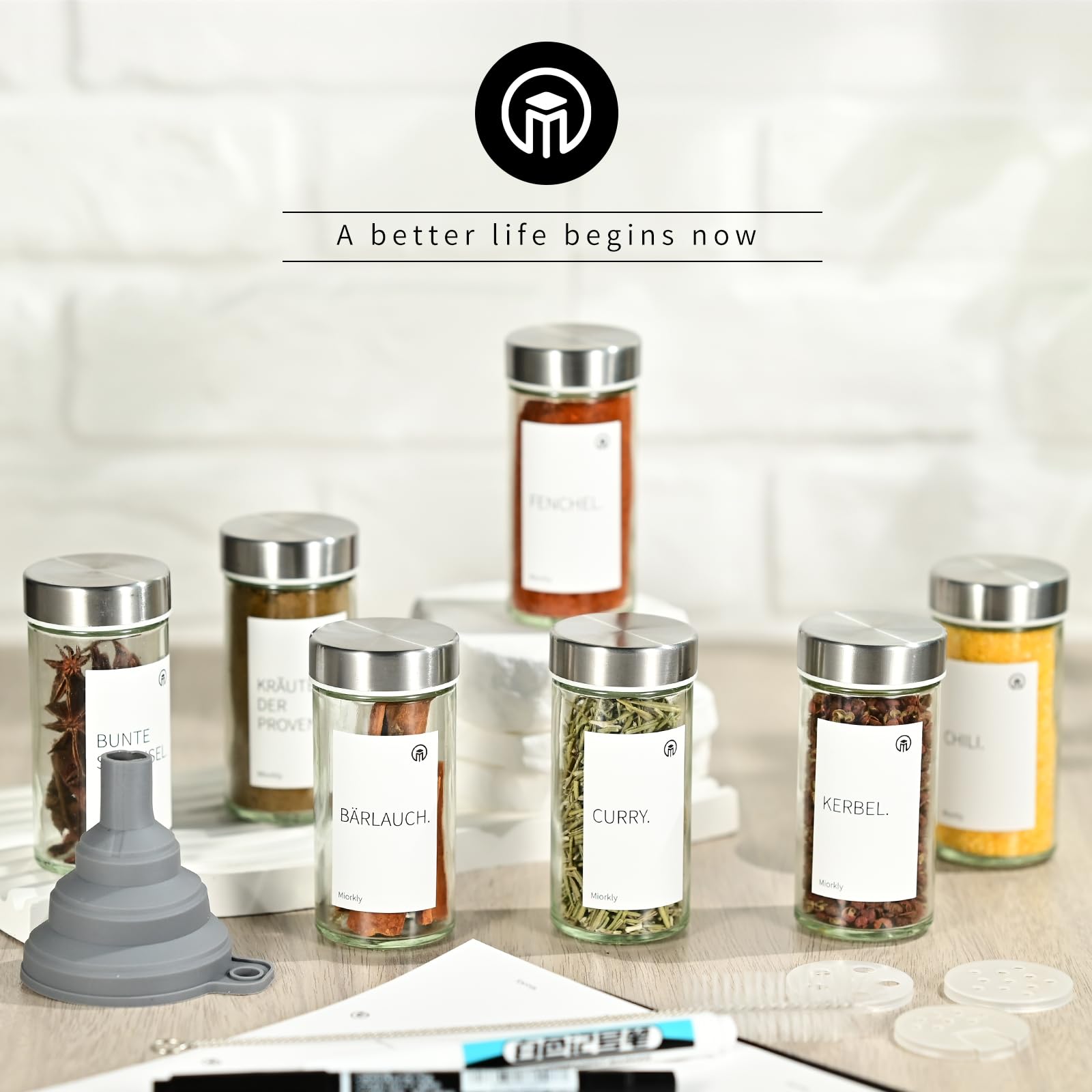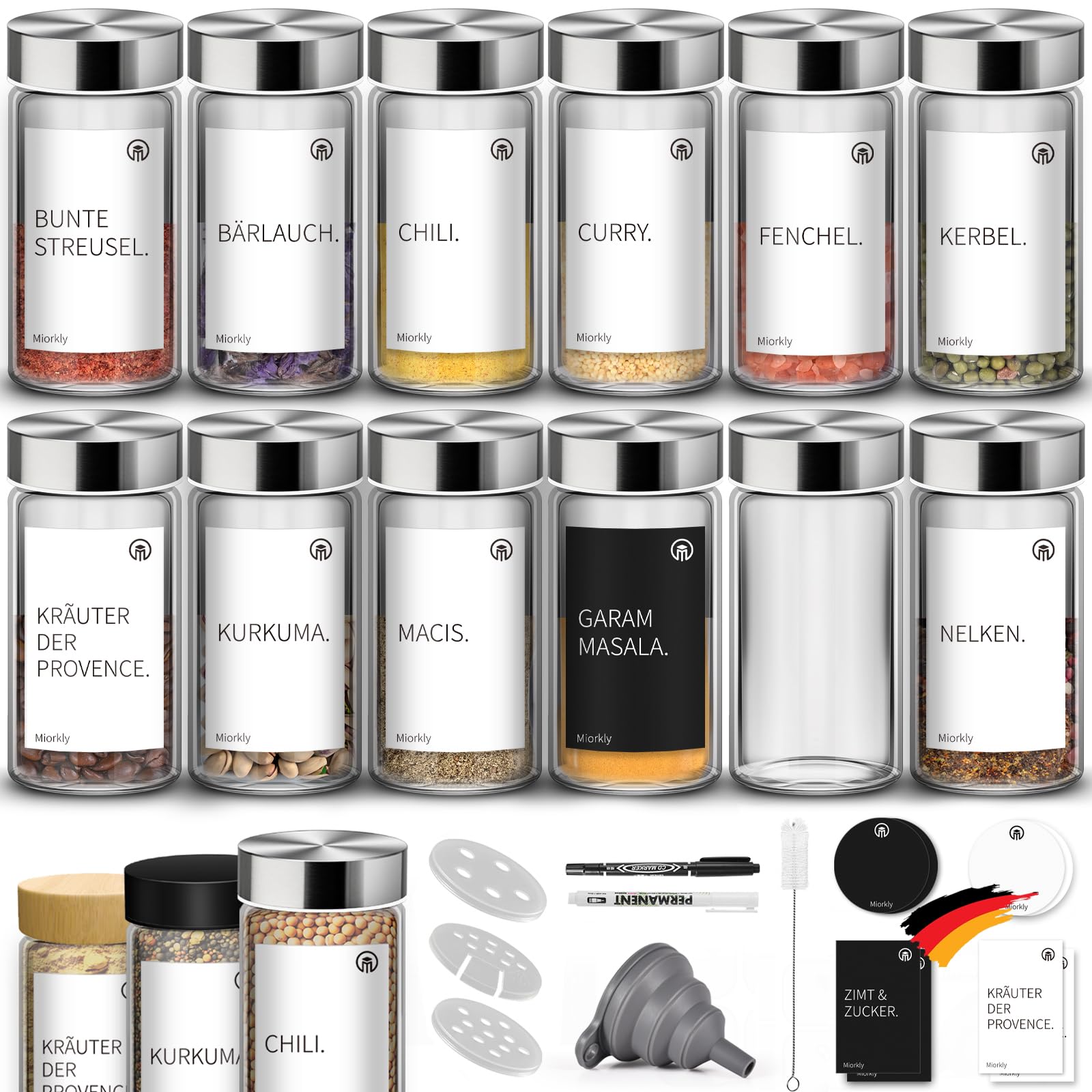 Miorkly 12 Gewürzgläser Set mit Streueinsatz