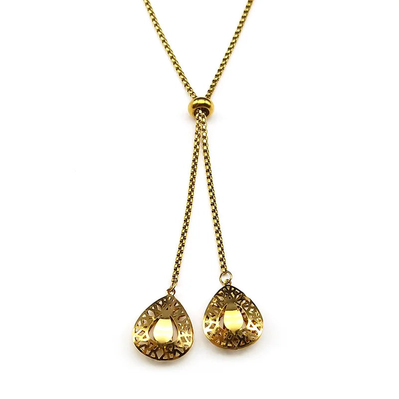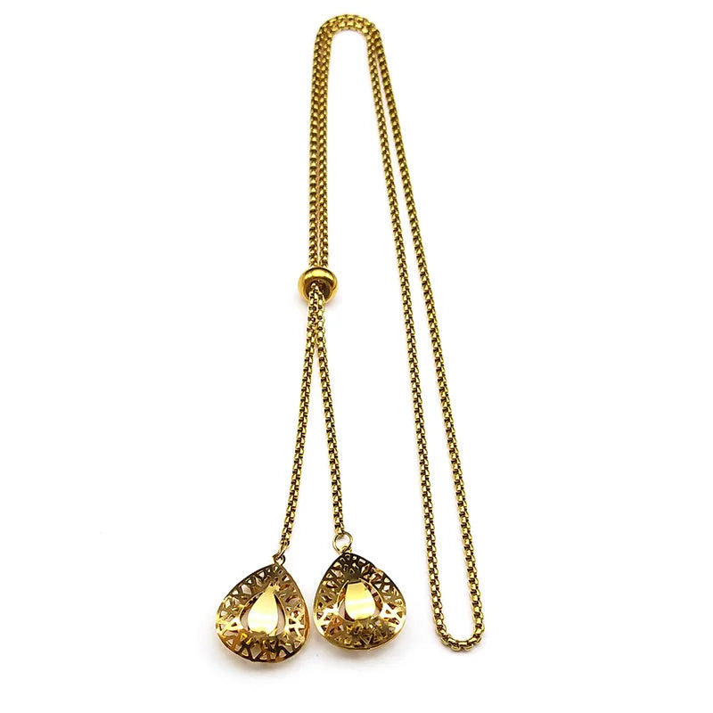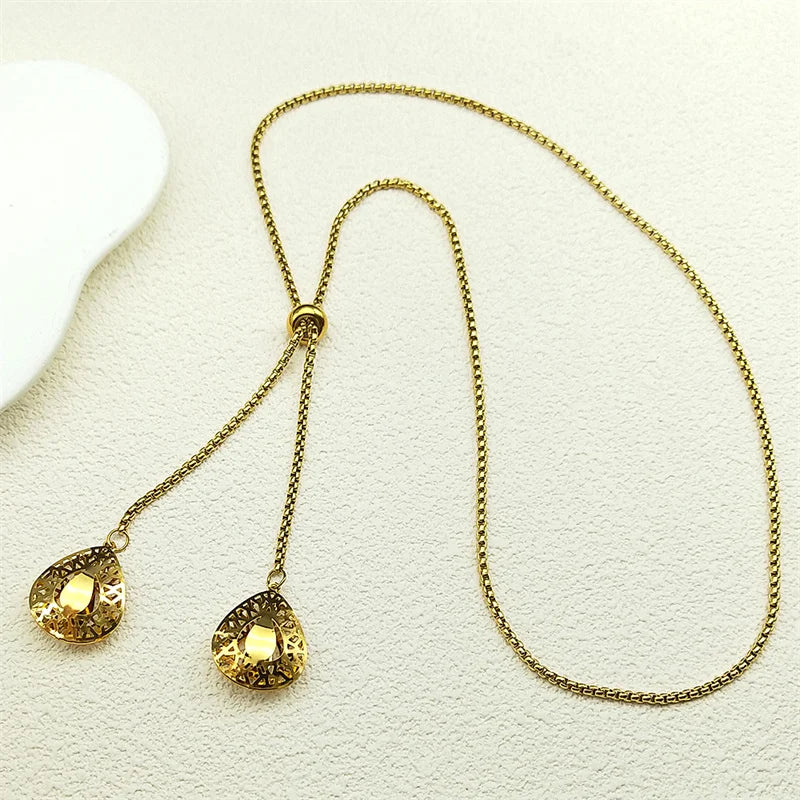 Diese modische Halskette aus Edelstahl zeigt einen einzigartigen hohlen Blumenanhänger in Wasserform. Die 70 cm lange Kastenkette ist verstellbar und eignet sich für Damen und Herren als stilvolles Accessoire für Partys, Jubiläen, Hochzeiten oder als Geschenk.