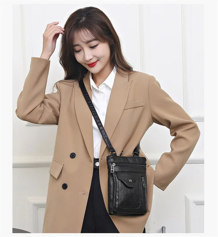 Modische Umhängetasche aus weichem Leder für Damen Handytasche