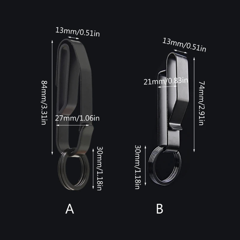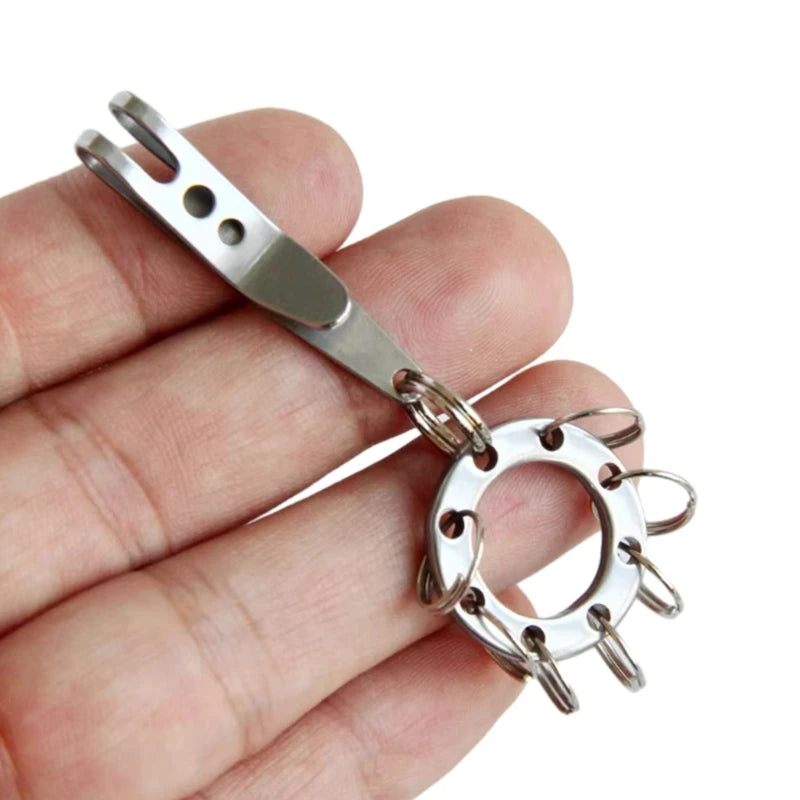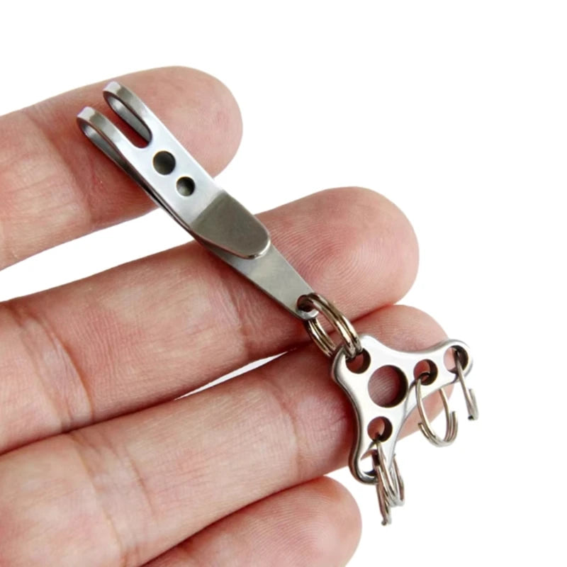 Praktischer Schlüsselclip aus Edelstahl zum Befestigen am Gürtel oder Schlüsselbund, ideal für Outdoor-Aktivitäten. Er schützt Ihre Schlüssel vor Verlust und sorgt für schnellen Zugriff.
