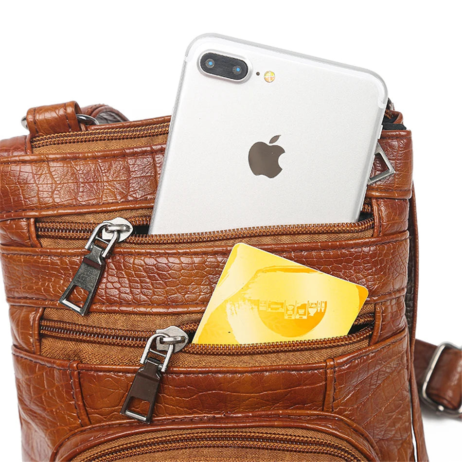 Multi Taschen Casual Schultertaschen Frauen Retro Flap Handtasche