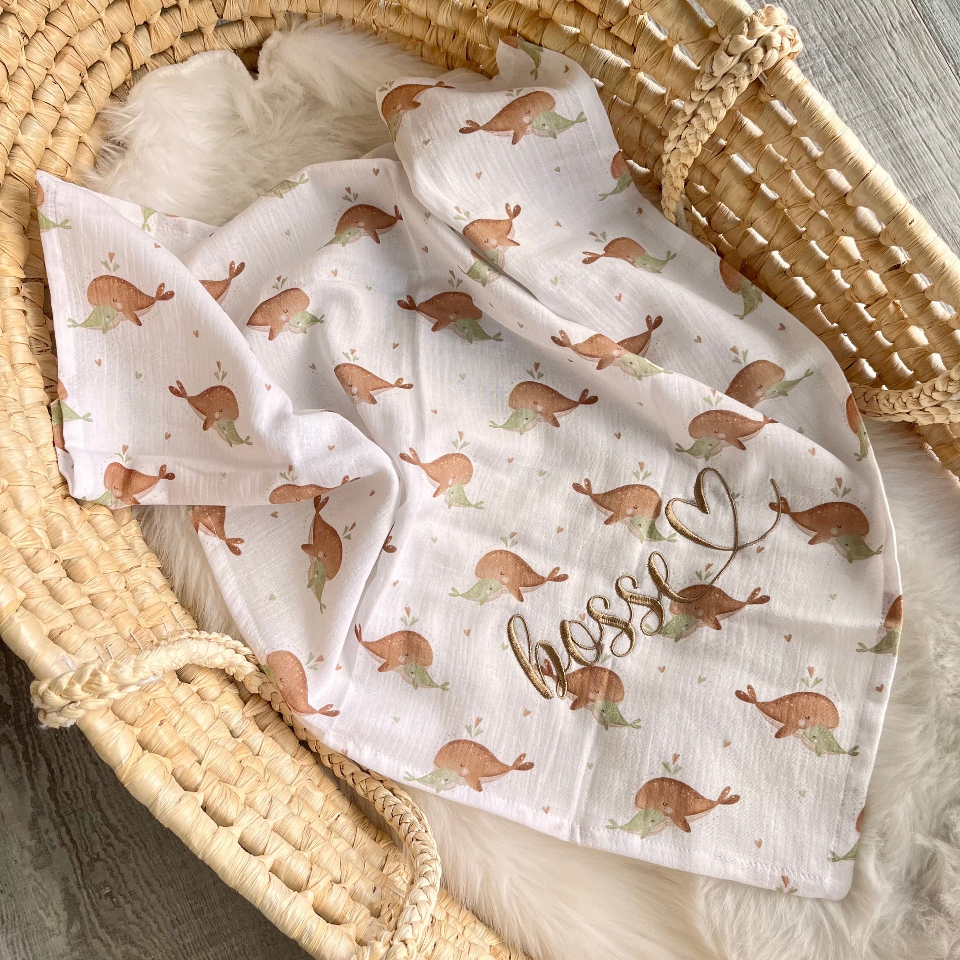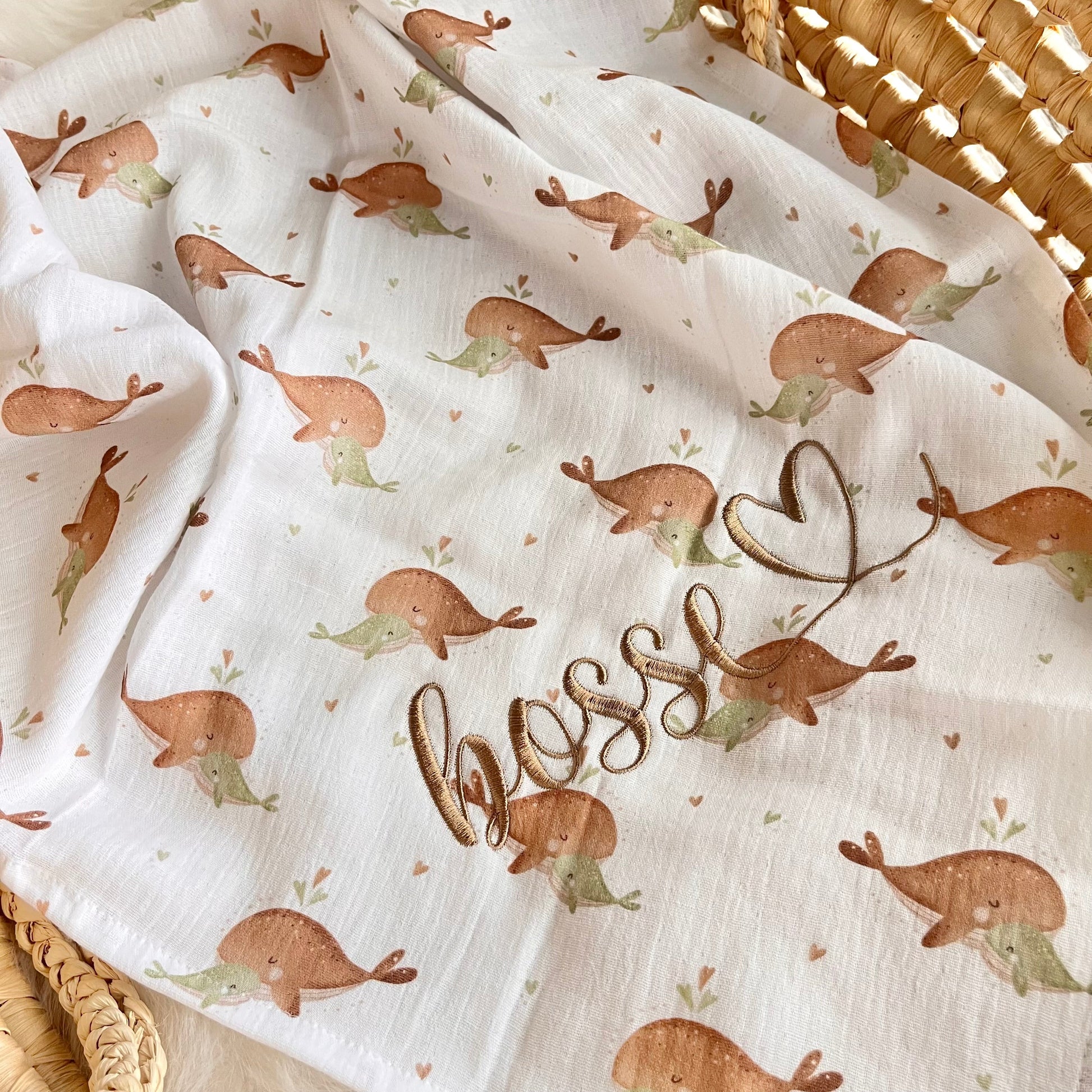 Entdecken Sie das bezaubernde Musselintuch "Wale", das durch seine Leichtigkeit und Weichheit überzeugt. Dieses Tuch bietet nicht nur Ihrem Kind Komfort im Kinderwagen oder Autositz, sondern eignet sich auch wunderbar als XXL-Halstuch für die Mama.