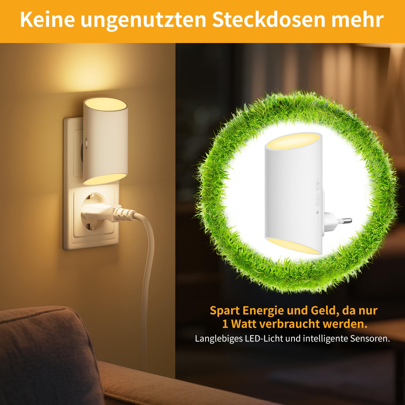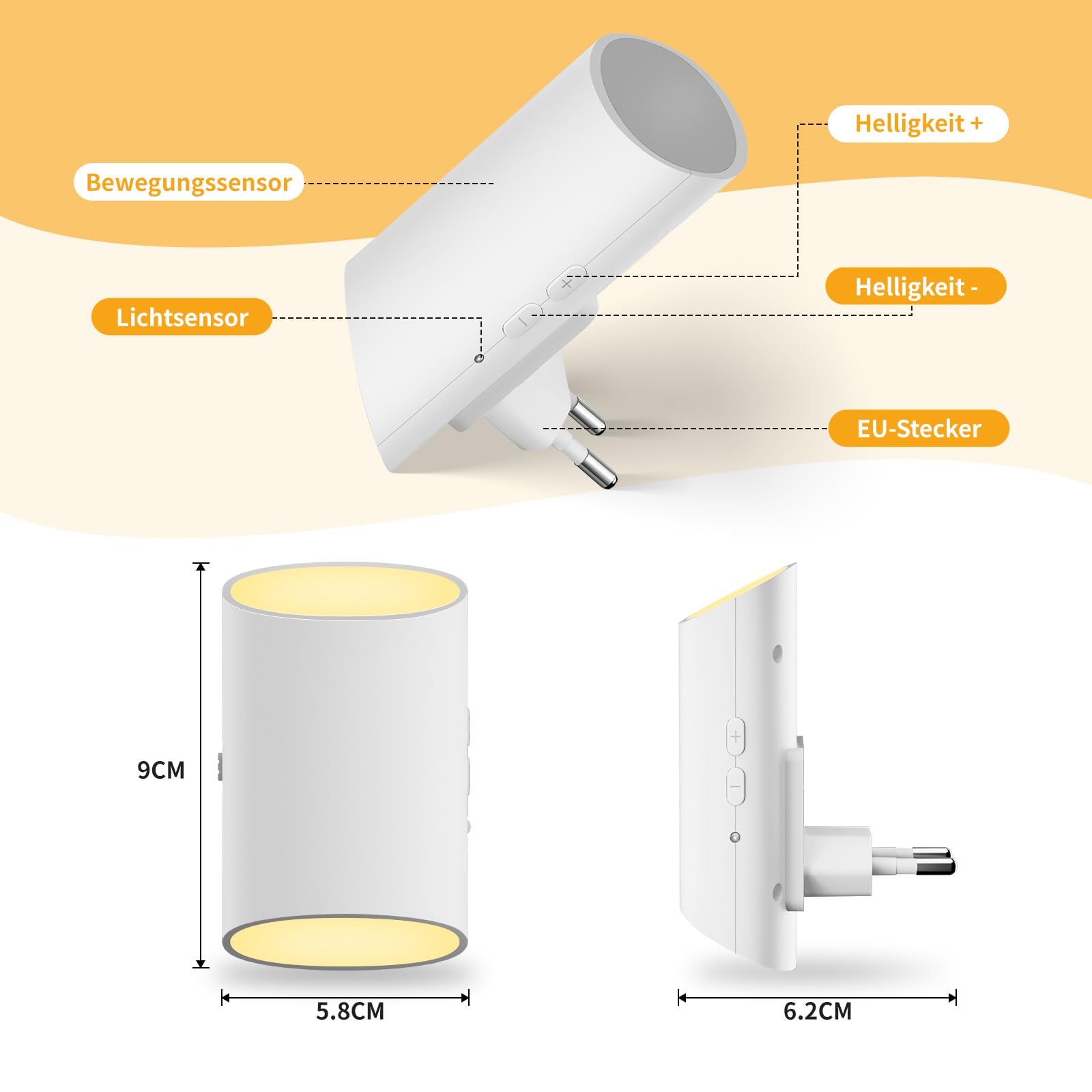 Nachtlicht Steckdose mit Bewegungsmelder und Dammerungssensor 2 Stuck