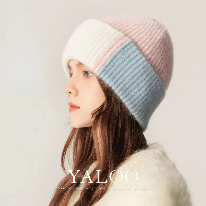 Weiche warme Damen Wintermütze aus Kaninchenwolle gestrickt