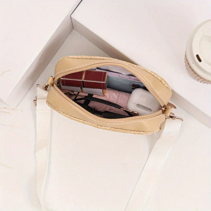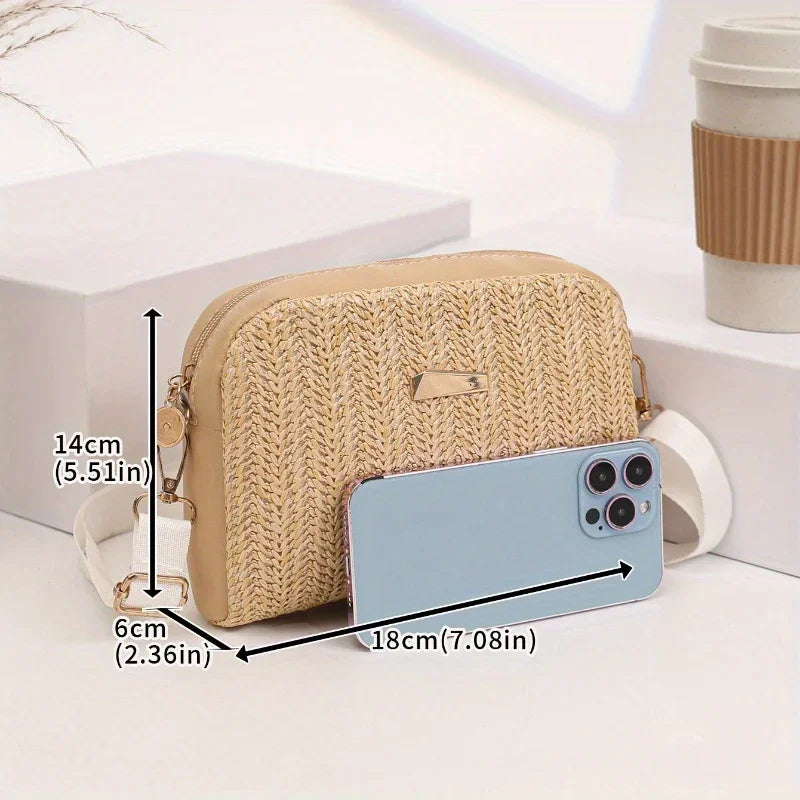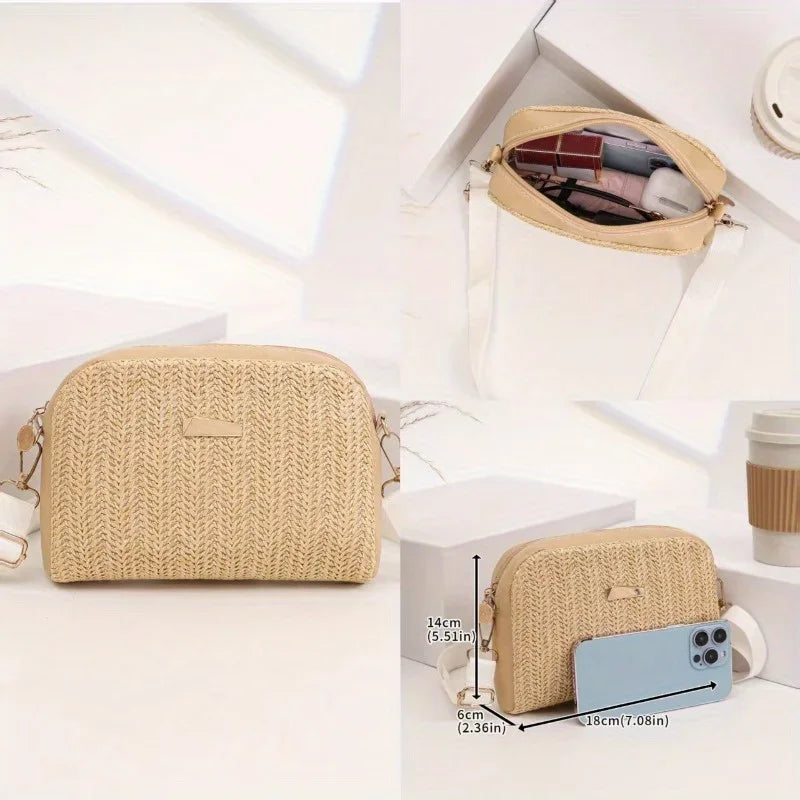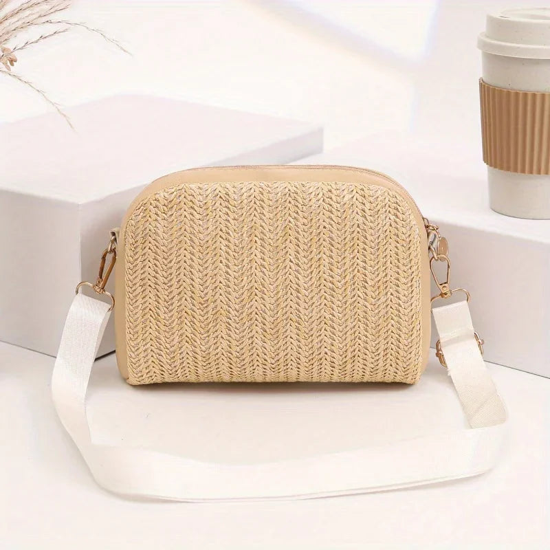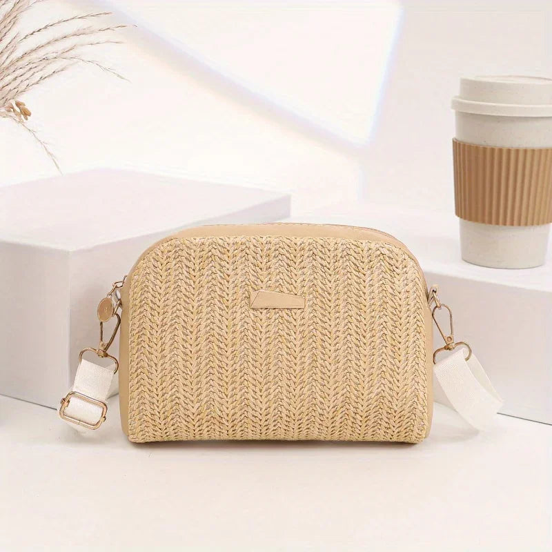 Kleine einfarbige Umhängetasche aus Stroh für vielseitigen Alltags- und Party-Look