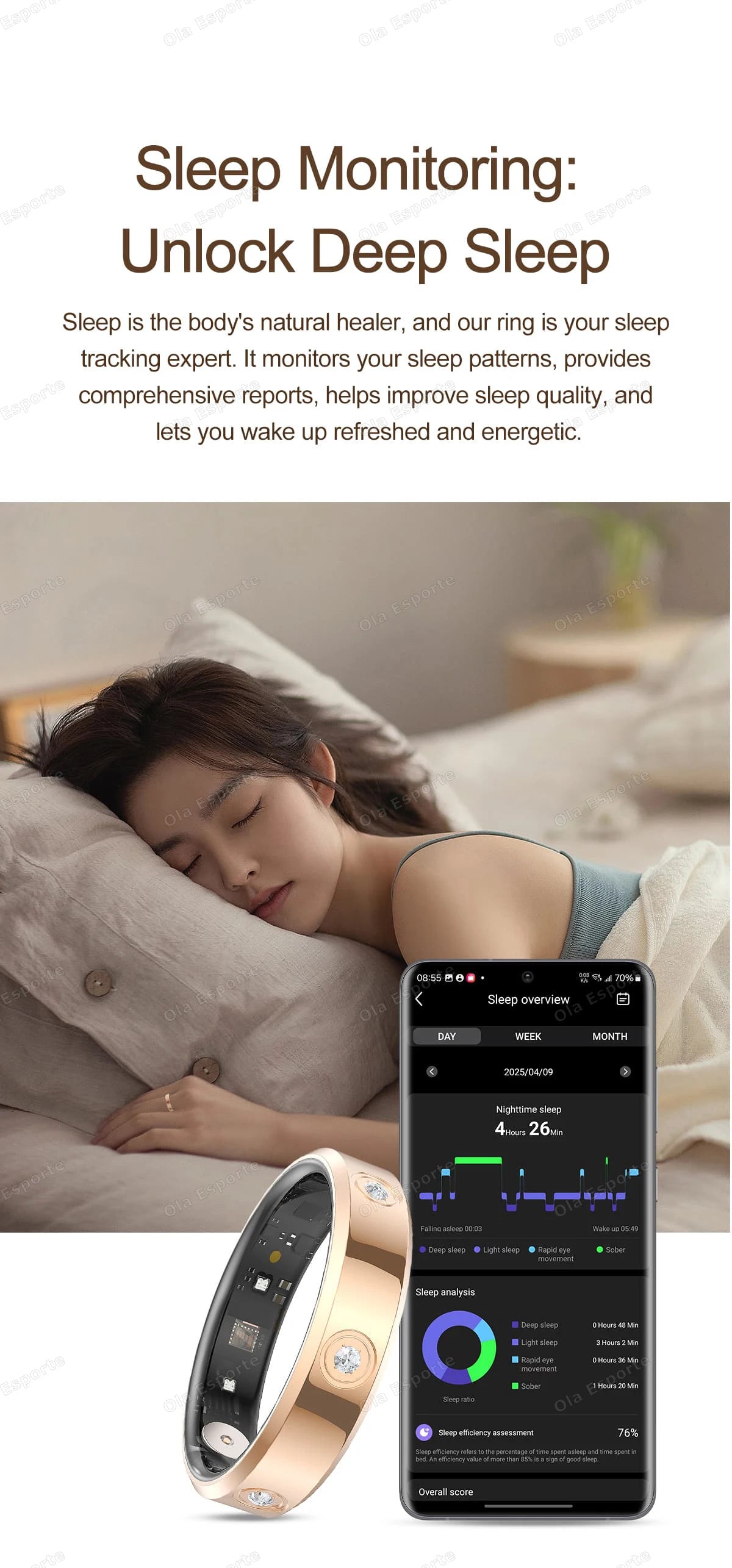 Schmaler Damen Smart Ring mit Schlaf und Gesundheitsmonitor 2025
