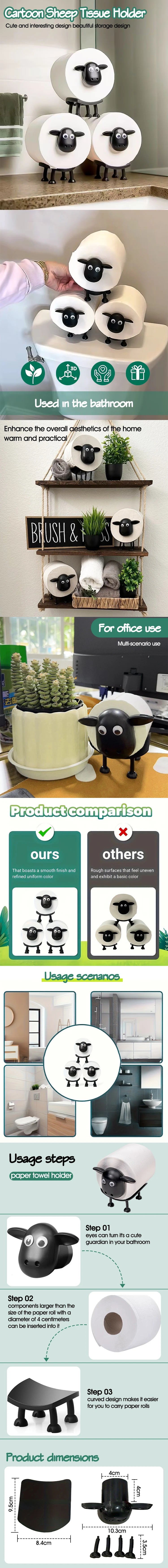 Bringen Sie mit diesem freistehenden Toilettenpapierhalter in süßer Schafform ein charmantes Element in Ihr Badezimmer, Schlafzimmer oder den Wickeltisch. Er kombiniert funktionales Design mit einem niedlichen Dekor und sorgt so für Ordnung und Freude im Alltag. Dieses Produkt besticht durch sein Design aus China, das einen verspielten Akzent in Ihrem Raum setzt.