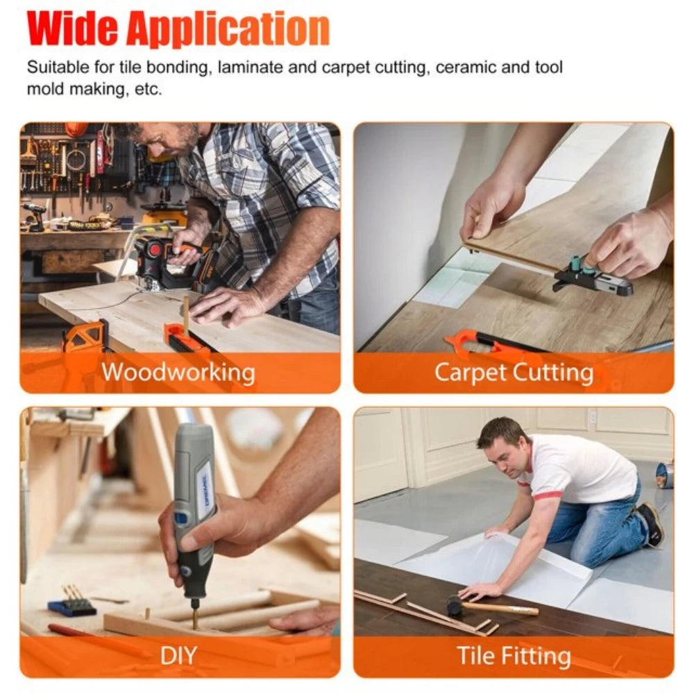Perfekt für Heimwerker und Profis in der Holzbearbeitung, beim Fliesenlegen, Laminat- oder Teppichzuschnitt sowie für die Nachbildung von Keramik- und Werkzeugformen.