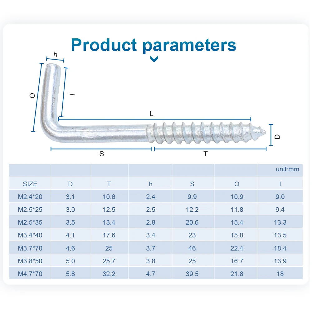 Erleichtern Sie das sichere Befestigen und Aufhängen leichter Gegenstände mit diesen verzinkten L-förmigen Schraubhaken aus Kohlenstoffstahl. Ideal für Innen- und Außenbereiche, bieten sie stabile und dauerhafte Halterungen für Fotos, Schlüssel, Tassen und mehr.
