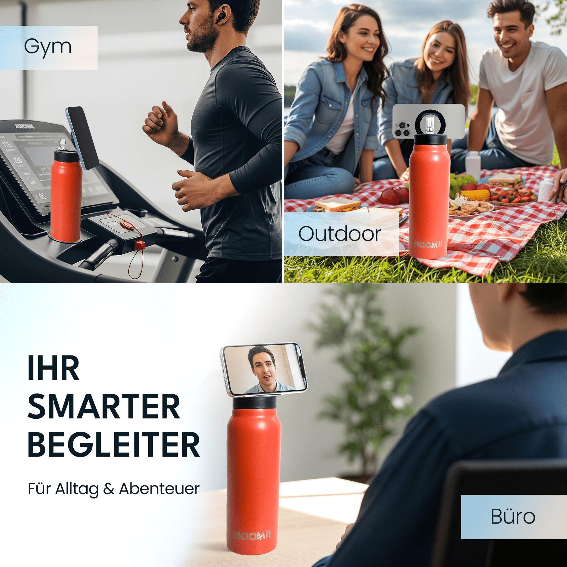 Diese hochwertige Trinkflasche besticht durch ihre Vielseitigkeit. Der innovative Magnetdeckel sorgt nicht nur für einen sicheren Verschluss, sondern dient auch als praktischer Handyhalter. So können Sie unterwegs bequem Videos schauen oder Anrufe entgegennehmen. Gefertigt aus robustem Edelstahl, ist sie eine langlebige und umweltfreundliche Alternative zu Einwegflaschen. Ihr großes Fassungsvermoegen von 800 Milliliter und das auslaufsichere Design machen sie zum perfekten Partner für lange Tage.