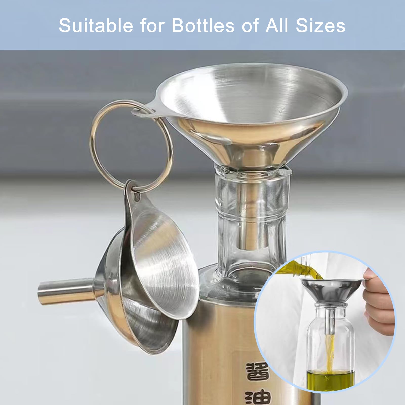 Das Edelstahl Küchentrichter Set ist ideal zum sauberen und effizienten Umfüllen von Flüssigkeiten und Pulvern. Perfekt geeignet für Öle, Säfte, Milch und Gewürze, unterstützt dieses Set Ihre Küchenroutine mit Langlebigkeit, Hygiene und vielseitiger Funktionalität.