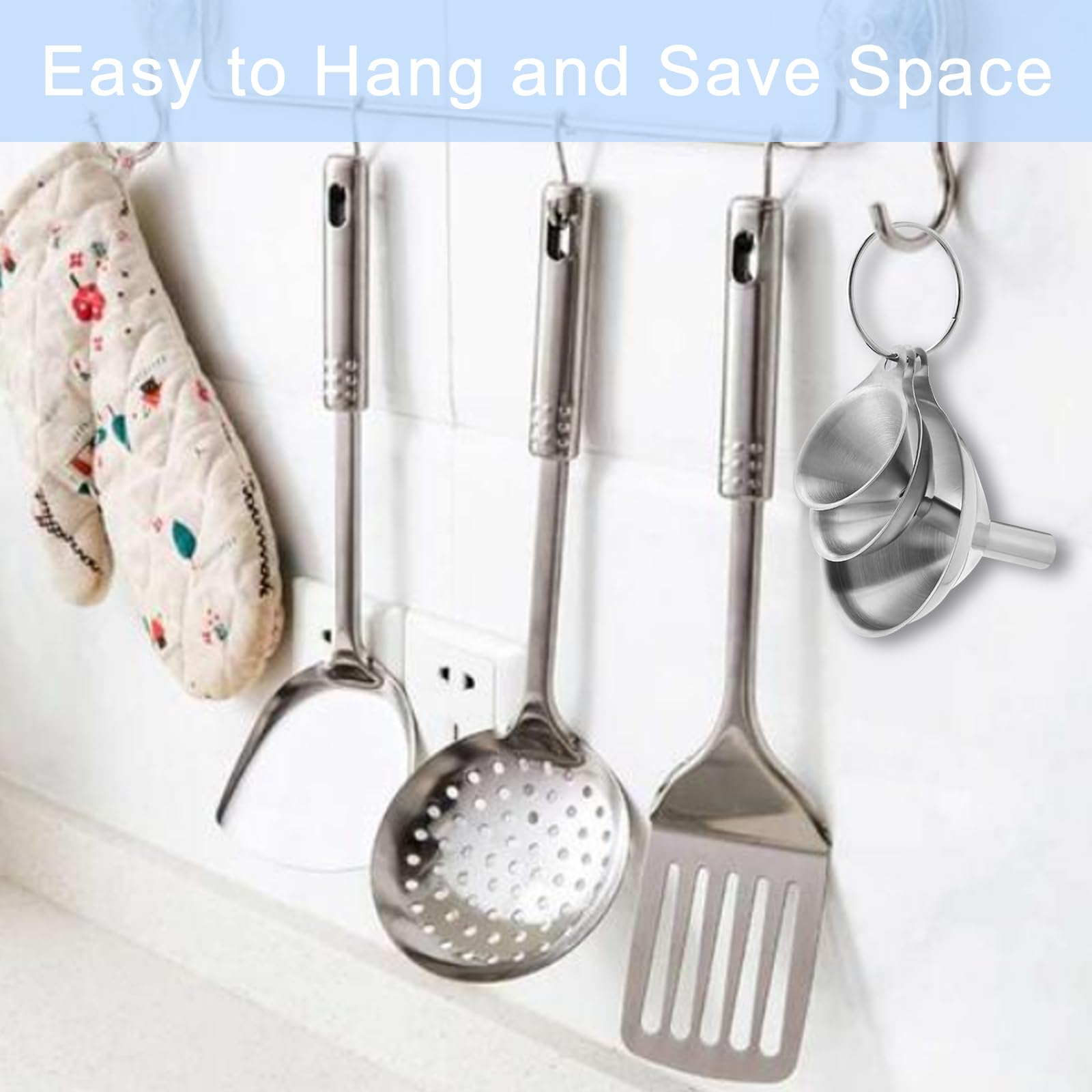- Farbe & Design: Elegantes Silberfinish mit praktischem Griff und Aufhängeschlaufe an jedem Trichter, die eine komfortable Handhabung und platzsparende Aufbewahrung ermöglichen.