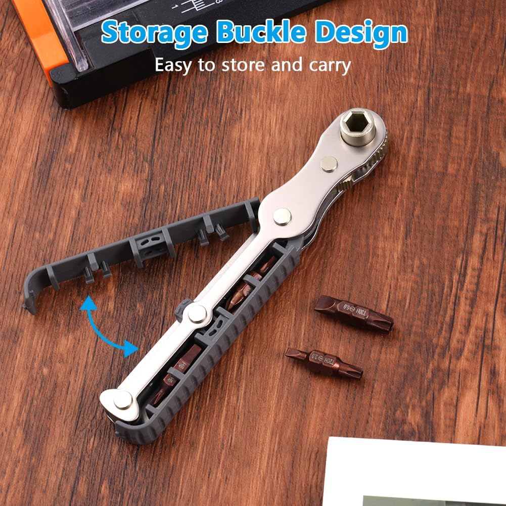 Dieser kompakte Ratschenschlüssel unterstützt Sie bei Reparaturen an Gadgets, Autos, Haushalten und Maschinen. Seine praktische Größe und der magnetische Sechskant-Bohrständer ermöglichen ein müheloses Arbeiten selbst in engen Bereichen. Das robuste Material sorgt für lange Lebensdauer und zuverlässigen Halt.