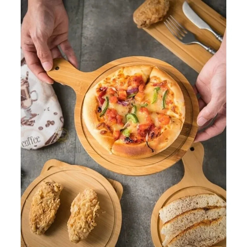 Vielseitige Bambus-Pizzaplatte mit praktischem Griff