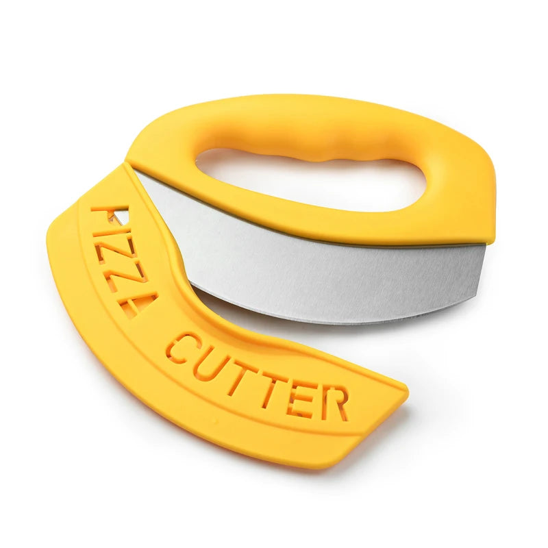 Dieser Pizzaschneider ist ein vielseitiges Küchenwerkzeug. Er schneidet mühelos Pizza, zerkleinert Kräuter und Käse.