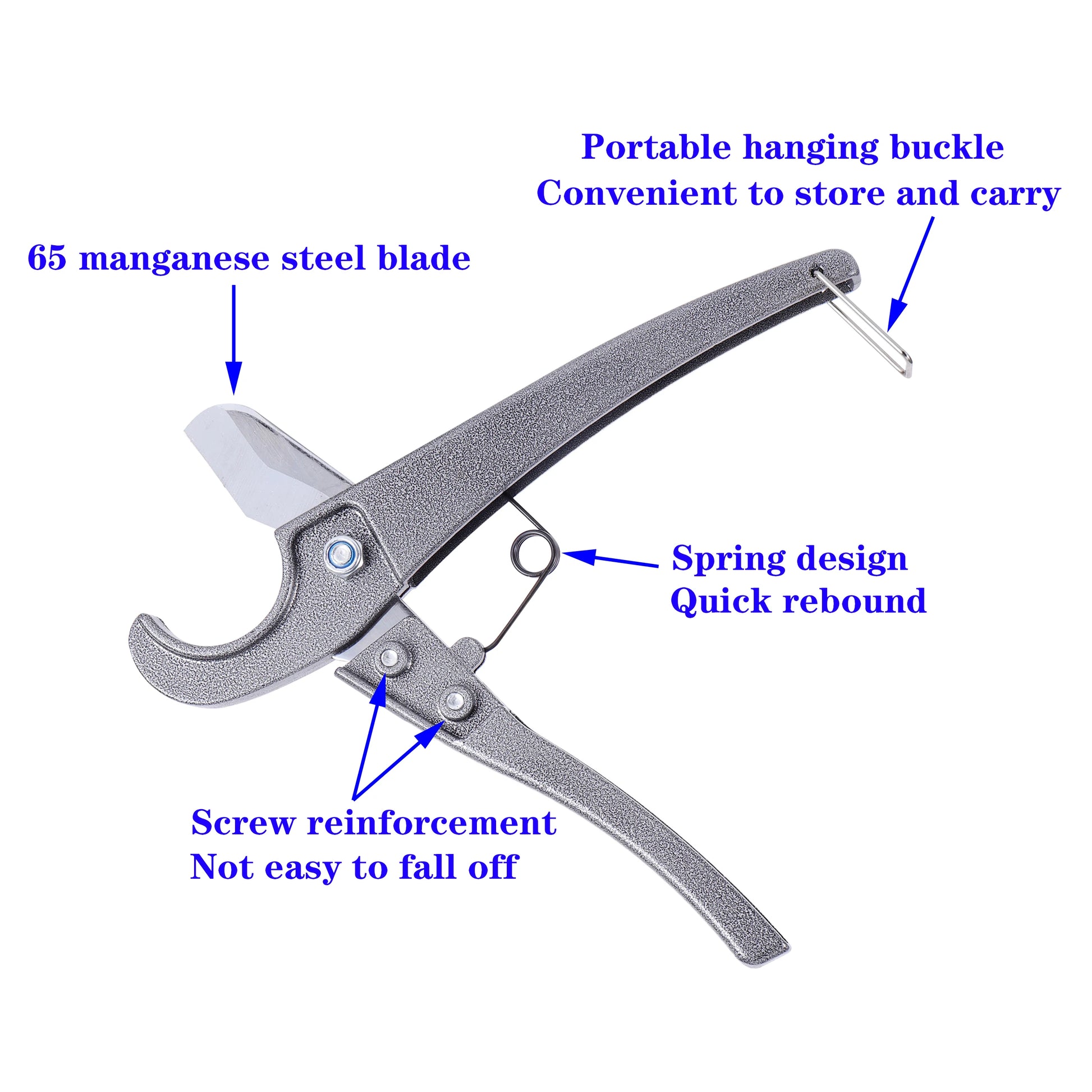 Dank des robusten Edelstahlblatts und der Ratschenmechanik eignet sich das Schneidewerkzeug optimal für Heimwerker und gewerbliche Anwendungen im Bereich Sanitär und Installation.