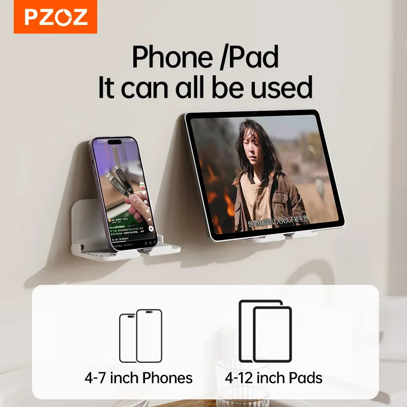 Diese faltbare Wandhalterung eignet sich ideal zur sicheren Platzierung von Handys und Tablets zwischen 4 und 12 Zoll Bildschirmgröße. Perfekt fürs Badezimmer, Küche oder Büro, um Geräte platzsparend und griffbereit zu halten.