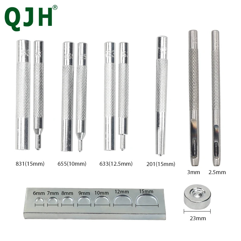 12-teiliges Leder Locher-Set mit Druckknöpfen, Nieten, Ösen und Setter