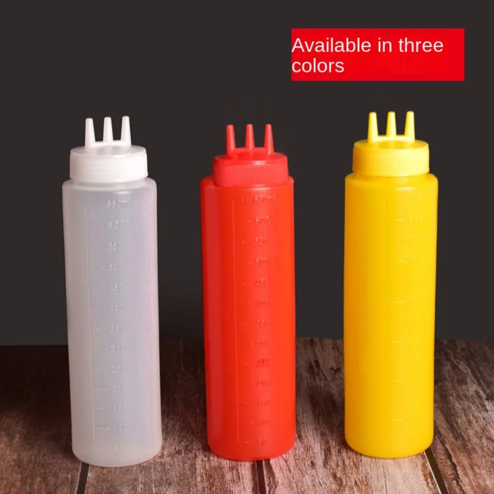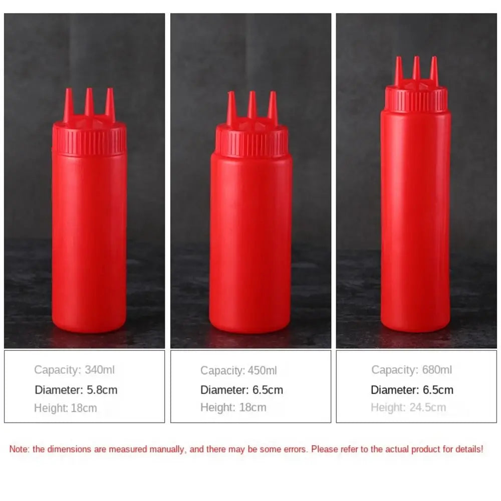 Praktische Quetschsaucenflasche aus Kunststoff mit 3 Düsen