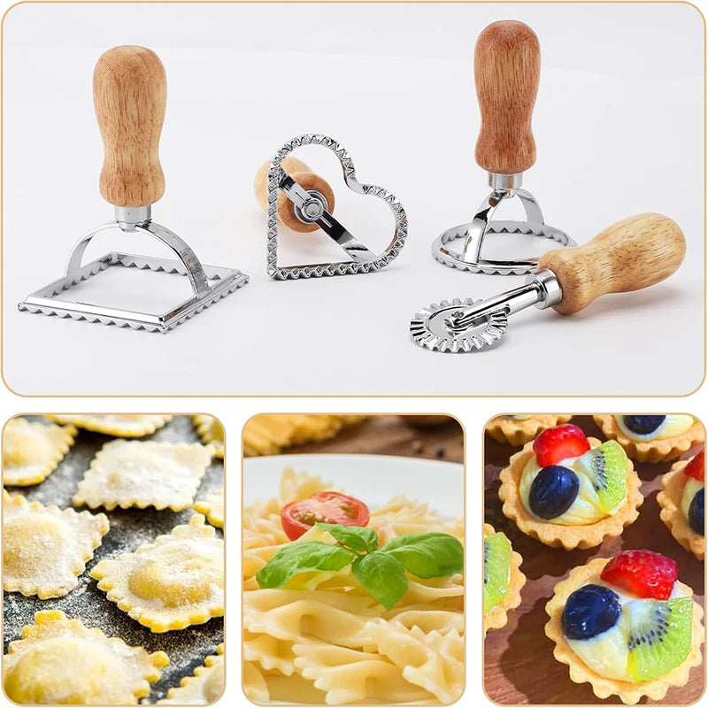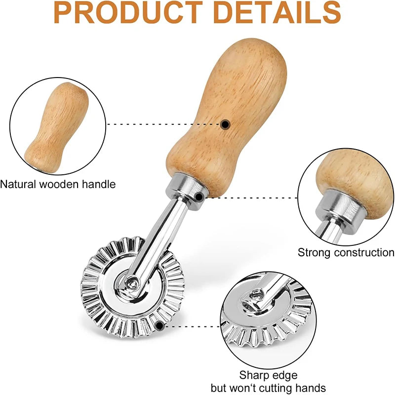 Premium Teigausstecher - Pastarad mit Holzgriff – Ravioli, Plätzchen, Gebäck