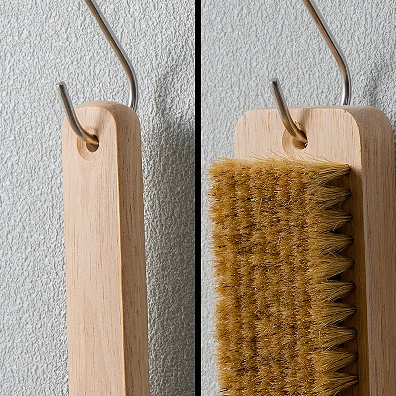 Diese Multifunktions-Wäschebürste eignet sich ideal für die Reinigung von Kleidung und Haushalt. Der Holzgriff sorgt für angenehmen Halt, während die Schweinehaarborsten schonend und effektiv Schmutz entfernen. Das praktische hängende Lochdesign ermöglicht eine platzsparende Aufbewahrung.