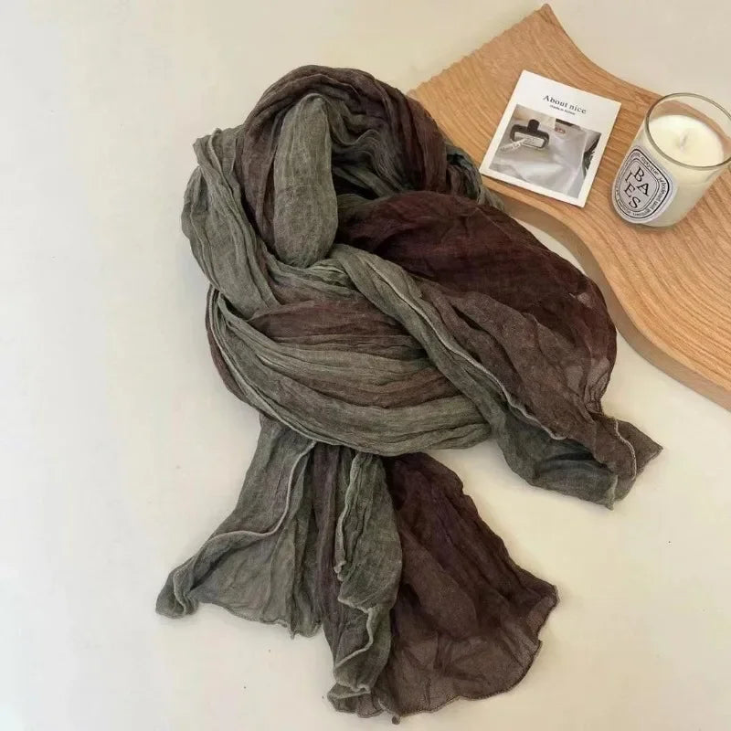 Langer Damen Schal Baumwolle Leinen Retro Farbverlauf Vielseitig Für Vier Jahreszeiten